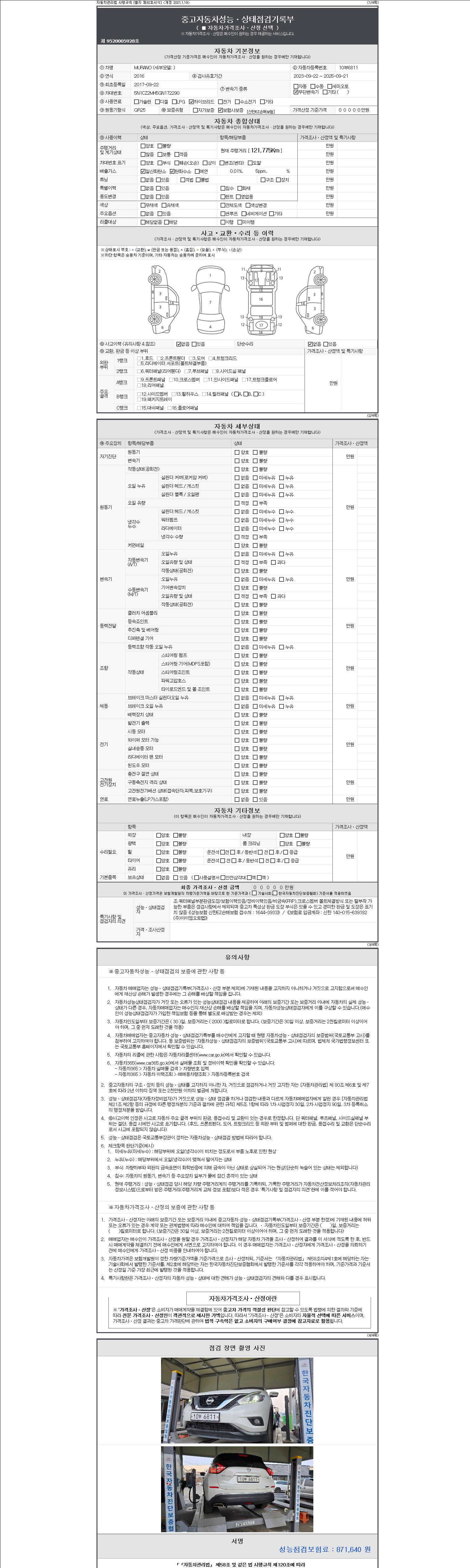 -중고자동차 매매업자를 통해 차량을 구입하실 경우 반드시 "중고자동차 성능, 상태점검 기록부"를 교뷰 받으셔야 하며, 매매업자는 반드시 의무 교부 하여야 압니다.