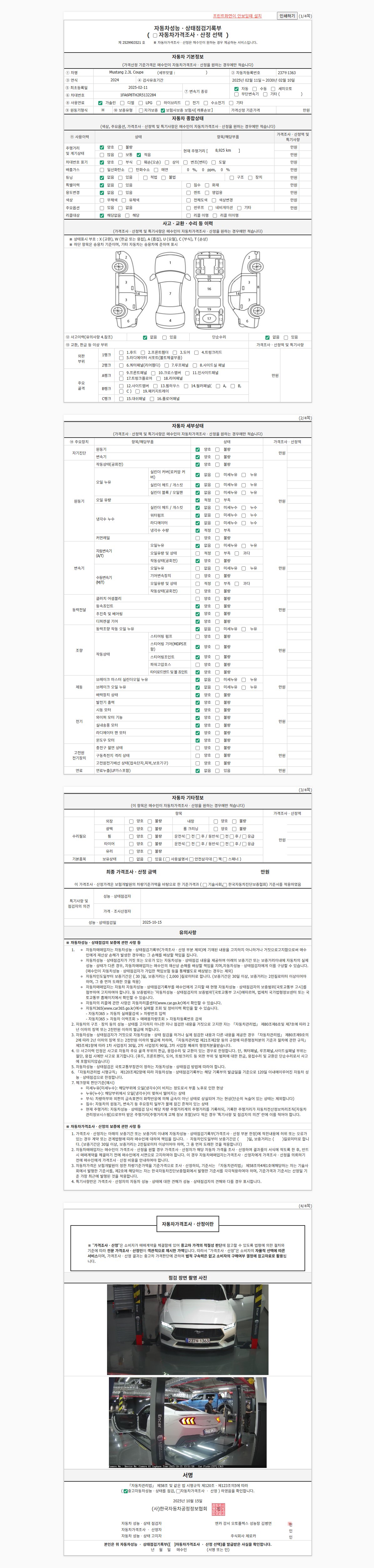| 주행거리 | 8,925 km | 차량번호 | 237두1363 | 사고유무 | 성능기록부 참조 | 제시번호 | 제 2025138236 호 |