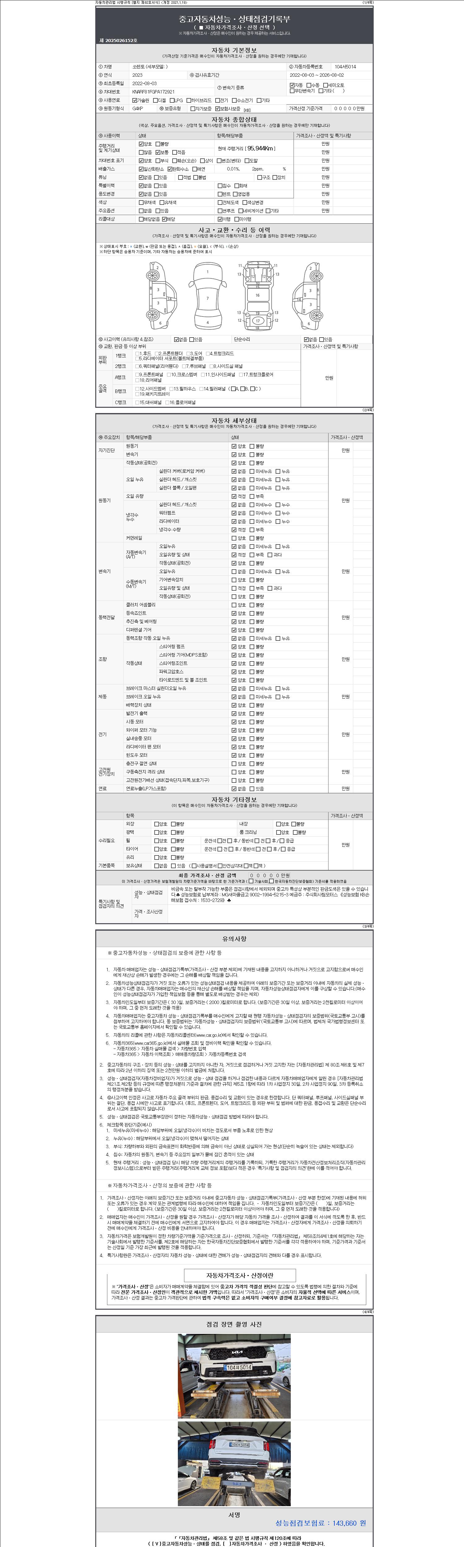 - 2. 차량 등록증이나 성능점검지 등을 상담자에게 요청및 확인하시고 사전에 미리 점검 하시기를 권유드립니다.