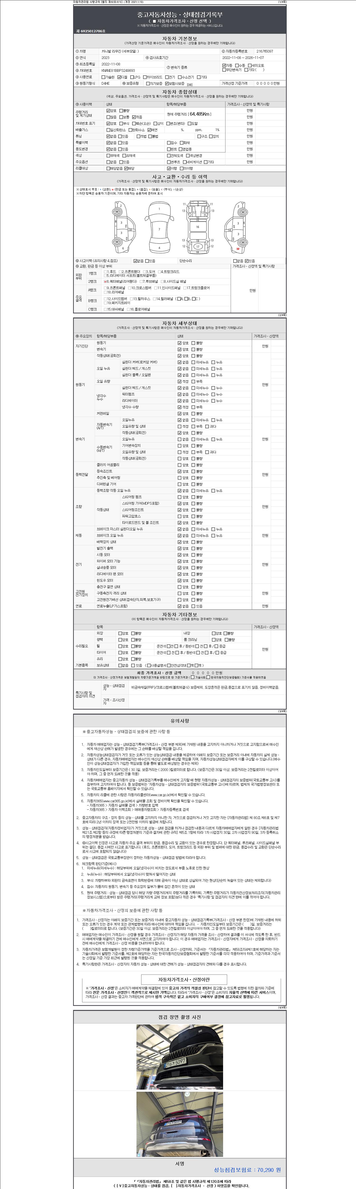 - 2. 차량 등록증이나 성능점검지 등을 상담자에게 요청및 확인하시고 사전에 미리 점검 하시기를 권유드립니다.