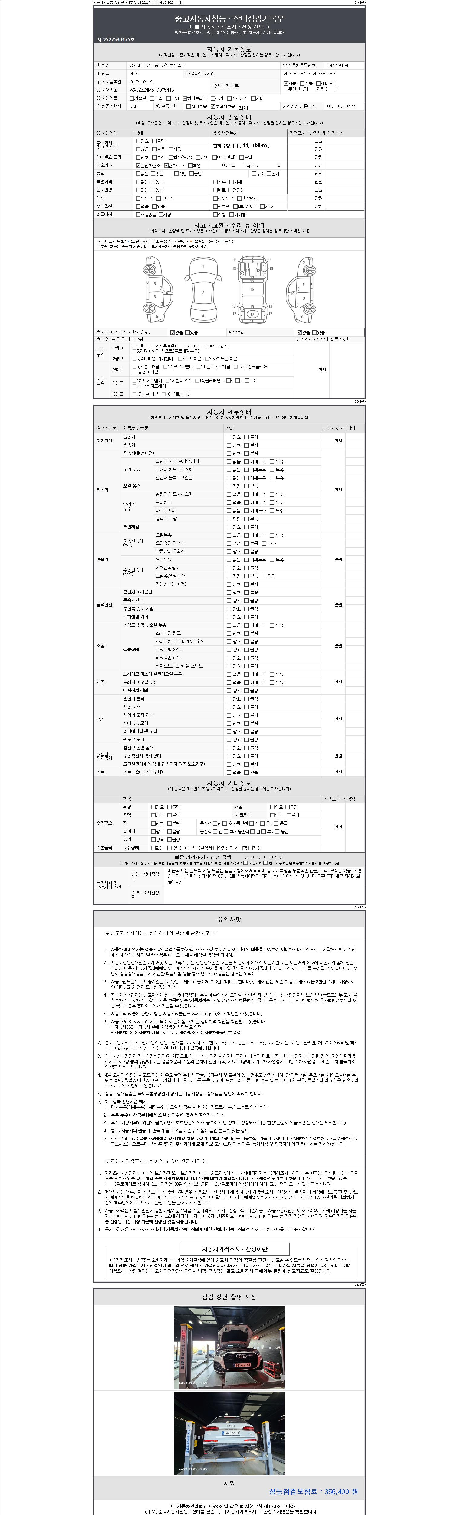 - 2. 차량 등록증이나 성능점검지 등을 상담자에게 요청및 확인하시고 사전에 미리 점검 하시기를 권유드립니다.