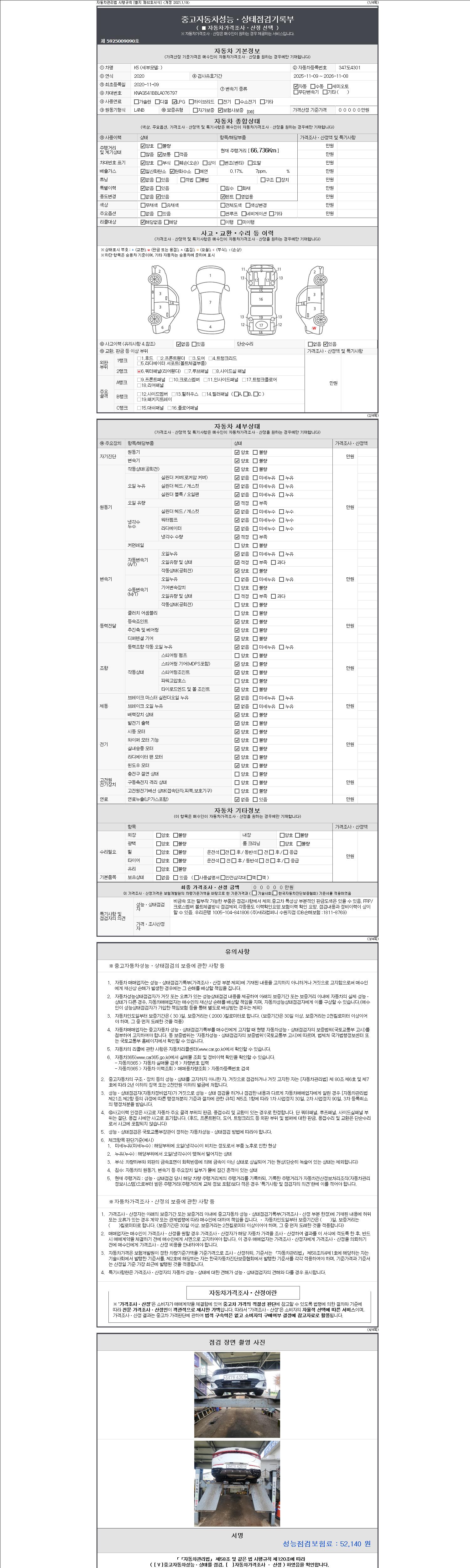 - 사고유무 : 성능기록부 참조