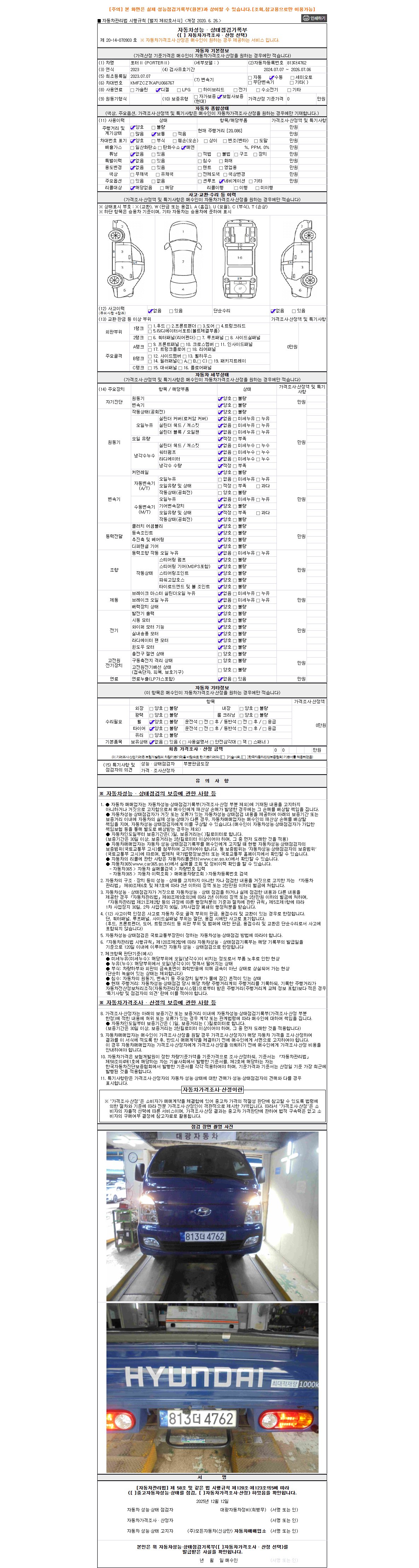 | 주행거리 | 20,000 km | 차량번호 | 813더4762 | 사고유무 | 성능기록부 참조 | 제시번호 | 제 2025168628 호 |