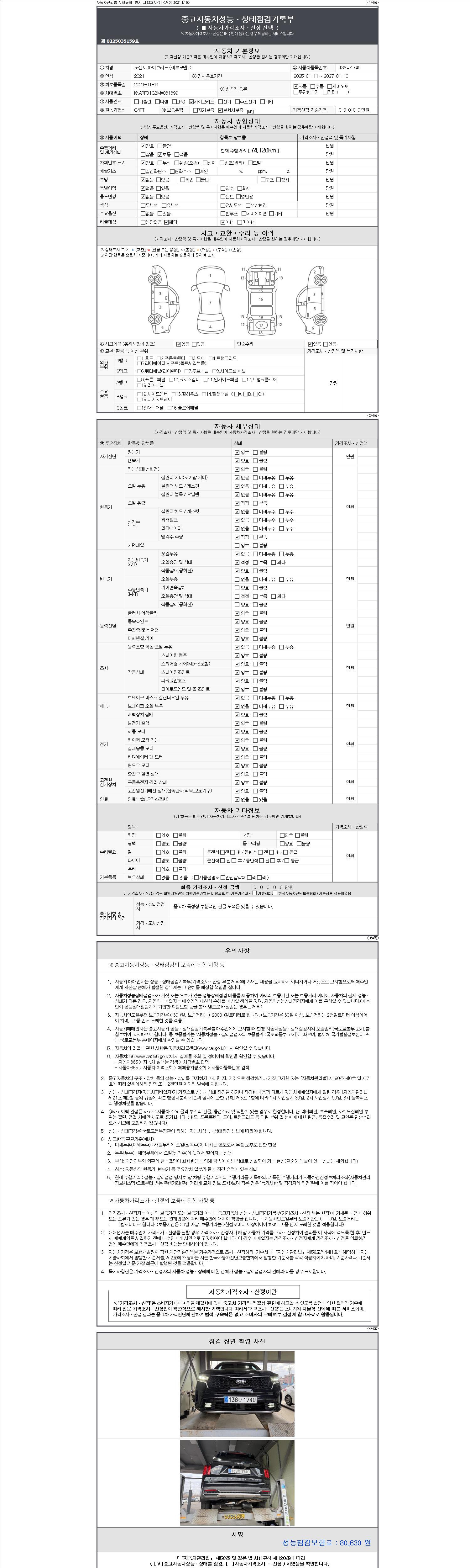 | 주행거리 | 74,120 km | 차량번호 | 138다1740 | 사고유무 | 성능기록부 참조 | 제시번호 | 제 2147483647 호 |