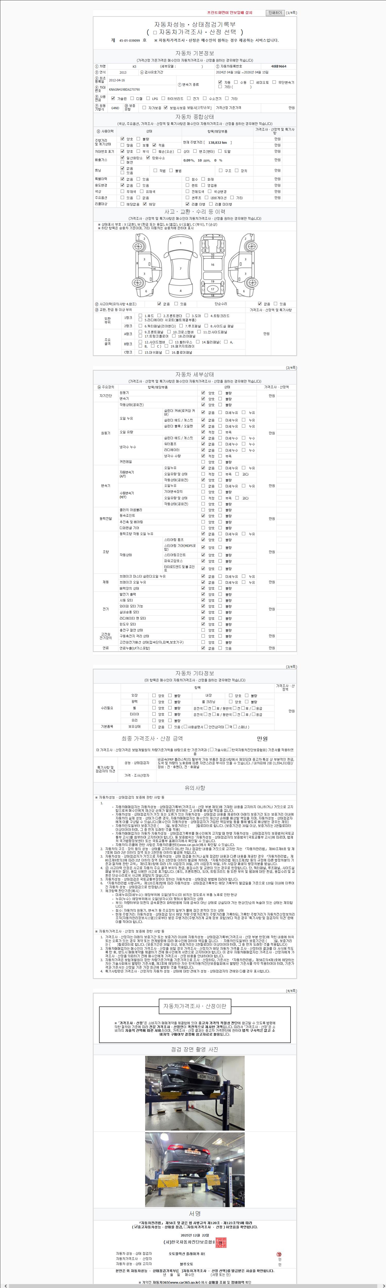 -중고자동차 매매업자를 통해 차량을 구입하실 경우 반드시 "중고자동차 성능, 상태점검 기록부"를 교뷰 받으셔야 하며, 매매업자는 반드시 의무 교부 하여야 압니다.