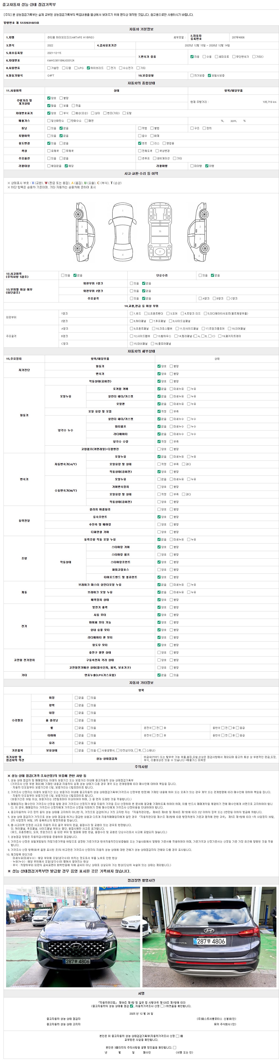 -중고자동차 매매업자를 통해 차량을 구입하실 경우 반드시 "중고자동차 성능, 상태점검 기록부"를 교뷰 받으셔야 하며, 매매업자는 반드시 의무 교부 하여야 압니다.