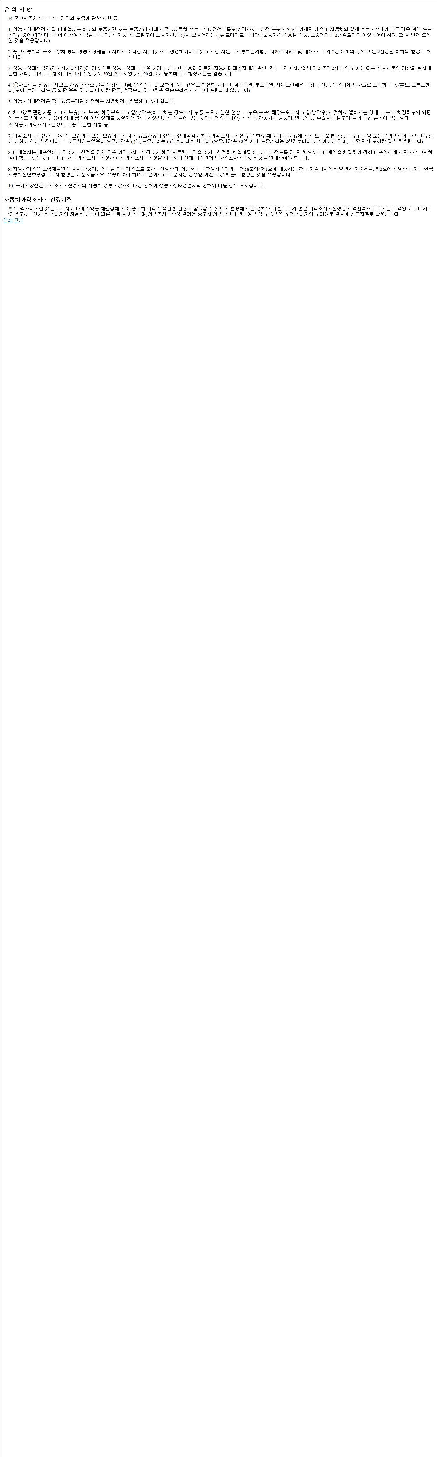 - 2. 차량 등록증이나 성능점검지 등을 상담자에게 요청및 확인하시고 사전에 미리 점검 하시기를 권유드립니다.