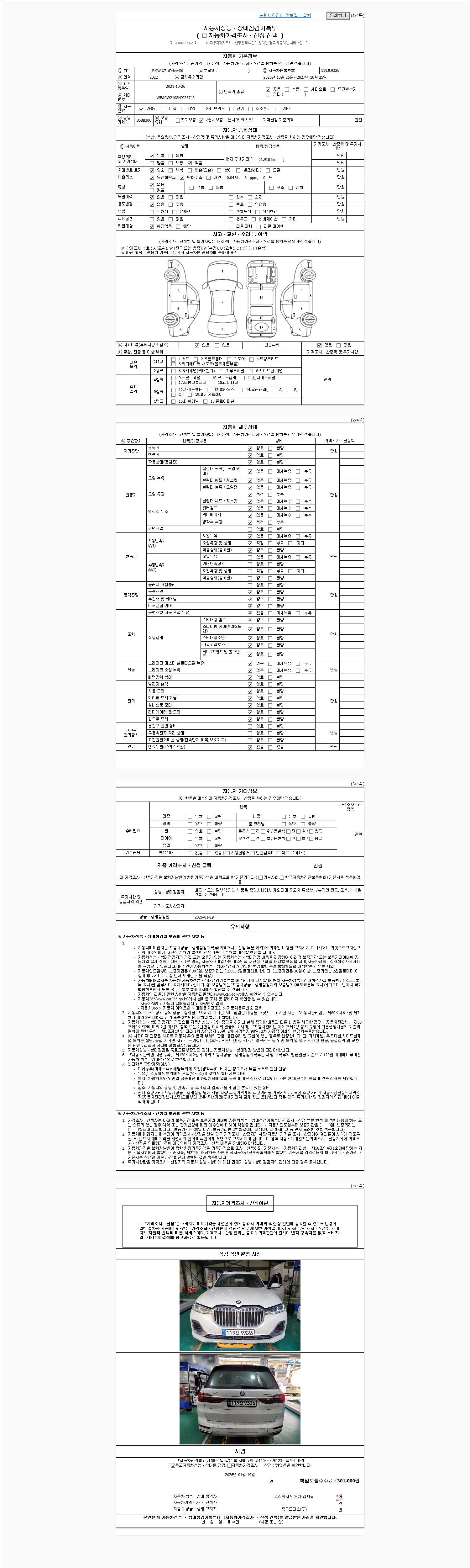 | 주행거리 | 51,918 km | 차량번호 | 119보9326 | 사고유무 | 성능기록부 참조 | 제시번호 | 제 2026003148 호 |