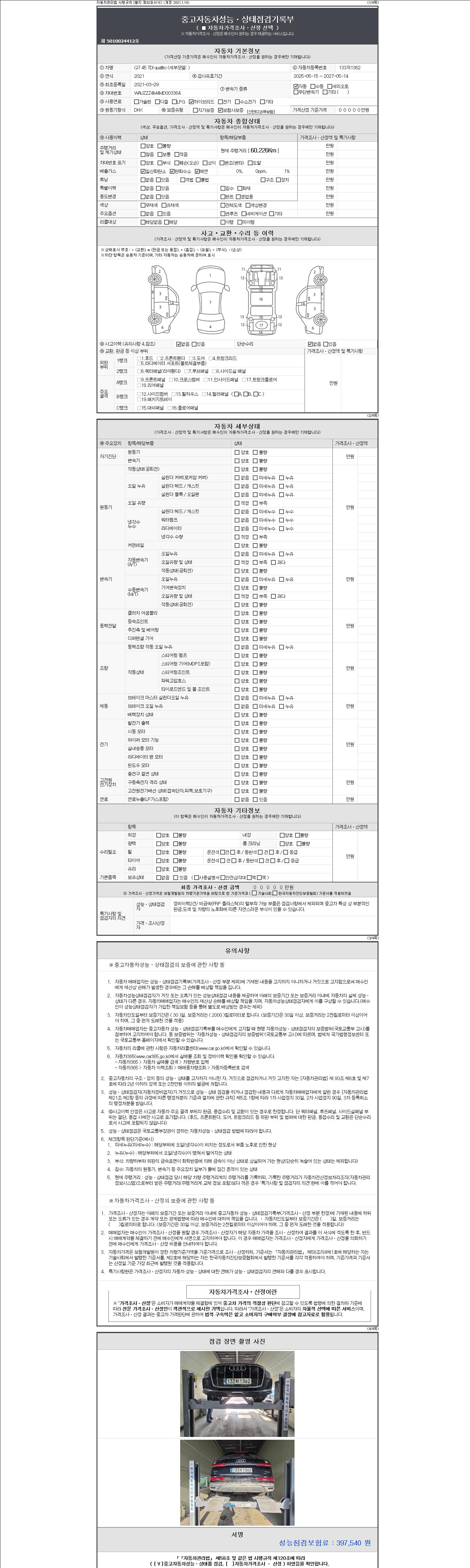 - 2. 차량 등록증이나 성능점검지 등을 상담자에게 요청및 확인하시고 사전에 미리 점검 하시기를 권유드립니다.