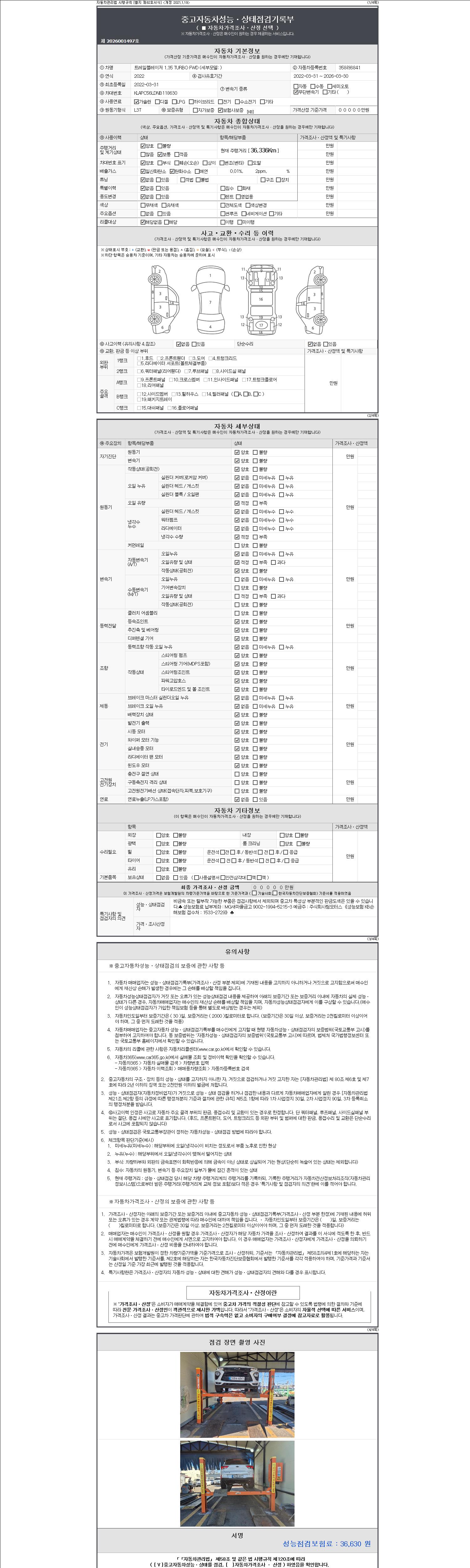 | 주행거리 | 36,336 km | 차량번호 | 358러6841 | 사고유무 | 성능기록부 참조 | 제시번호 | 제 2147483647 호 |