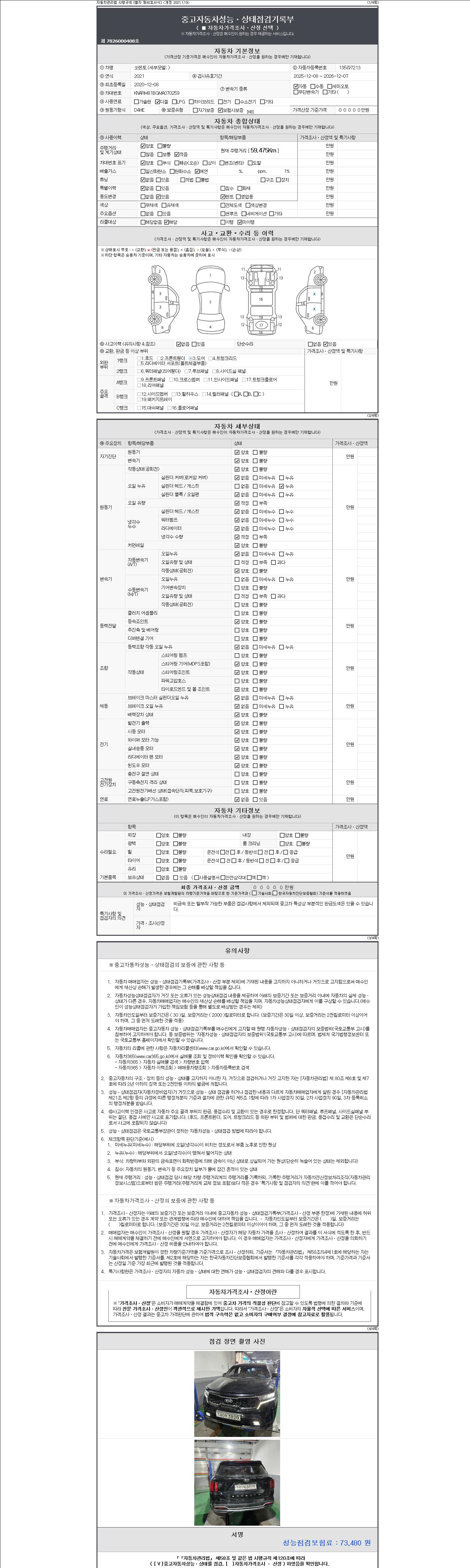 - 2. 차량 등록증이나 성능점검지 등을 상담자에게 요청및 확인하시고 사전에 미리 점검 하시기를 권유드립니다.