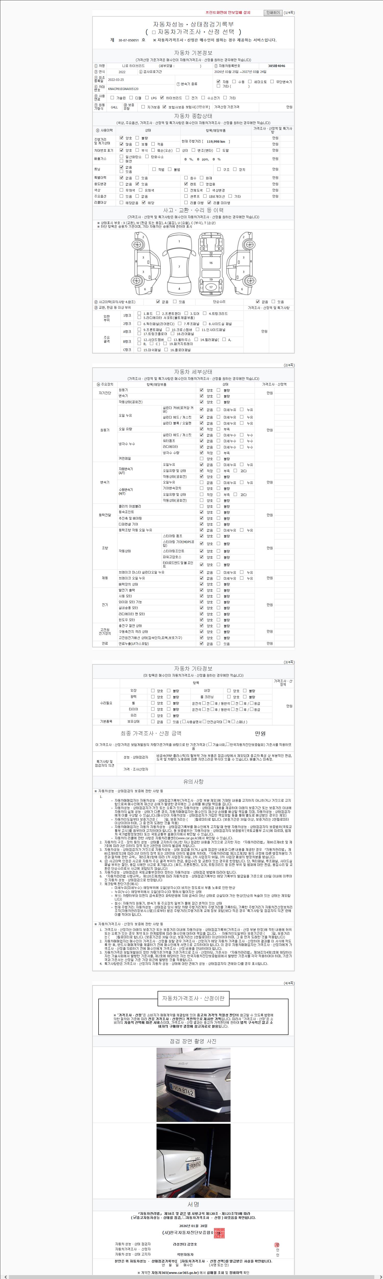 -중고자동차 매매업자를 통해 차량을 구입하실 경우 반드시 "중고자동차 성능, 상태점검 기록부"를 교뷰 받으셔야 하며, 매매업자는 반드시 의무 교부 하여야 압니다.