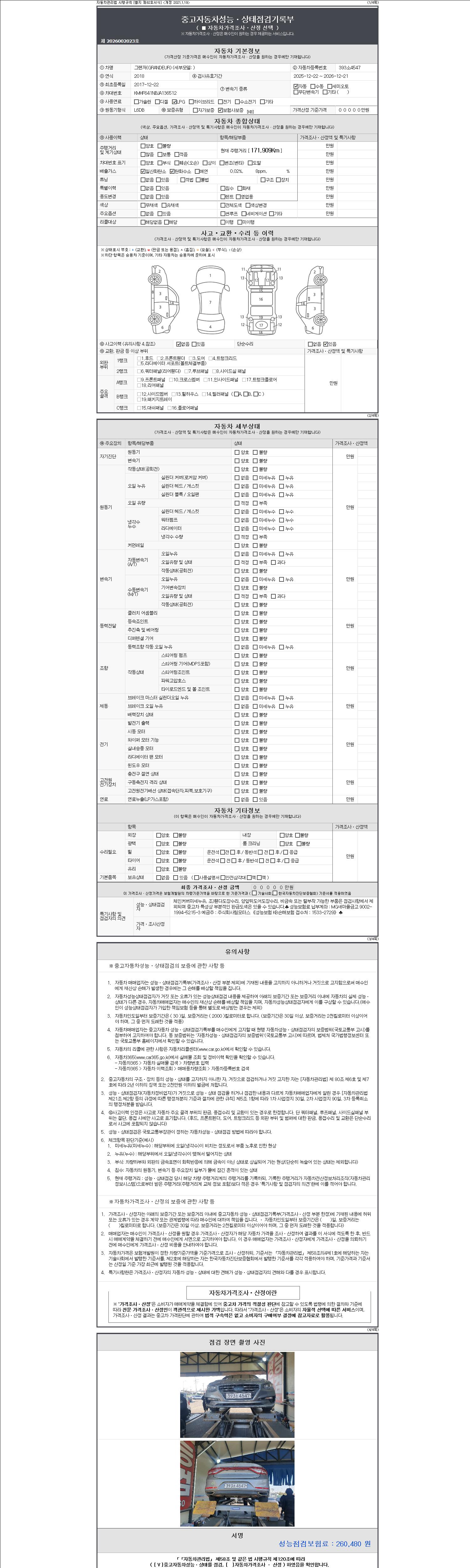| 주행거리 | 171,909 km | 차량번호 | 393소4547 | 사고유무 | 성능기록부 참조 | 제시번호 | 제 2147483647 호 |