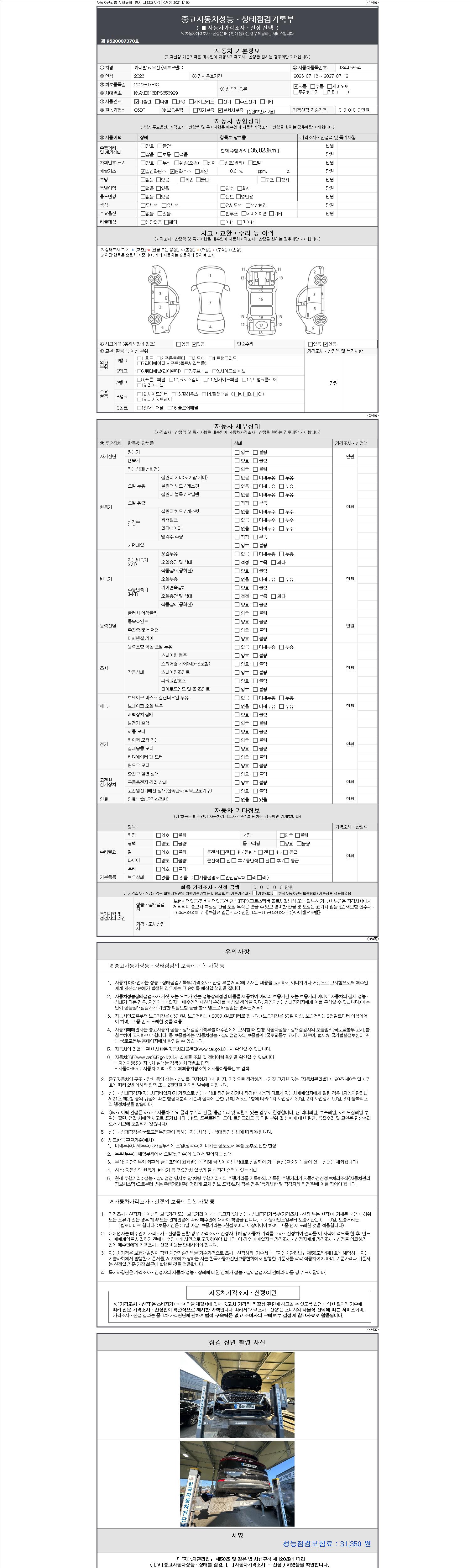 | 주행거리 | 35,823 km | 차량번호 | 184버5554 | 사고유무 | 성능기록부 참조 | 제시번호 | 제 2147483647 호 |