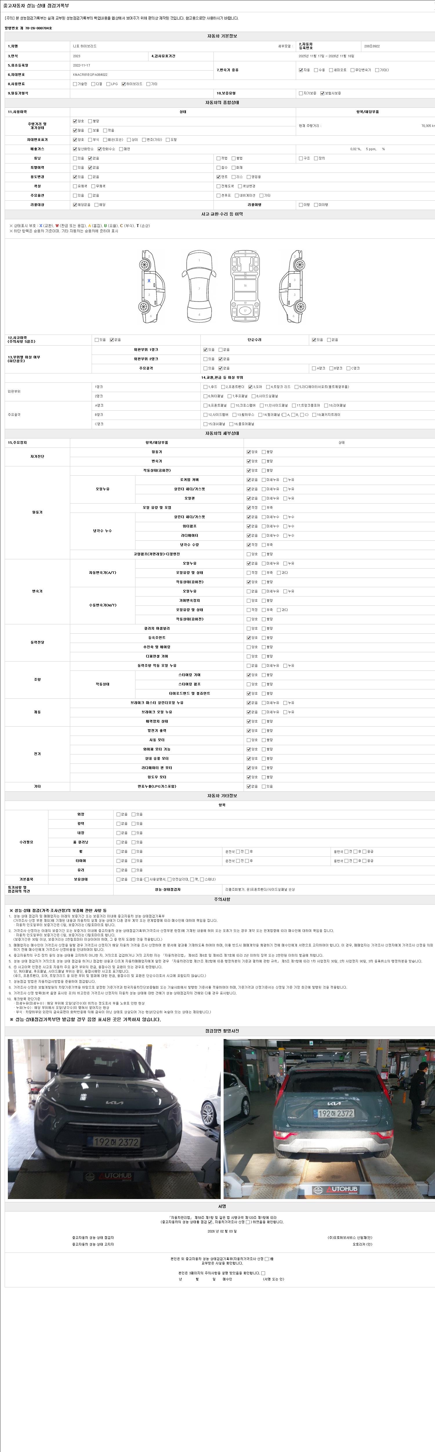 - 2. 차량 등록증이나 성능점검지 등을 상담자에게 요청및 확인하시고 사전에 미리 점검 하시기를 권유드립니다.