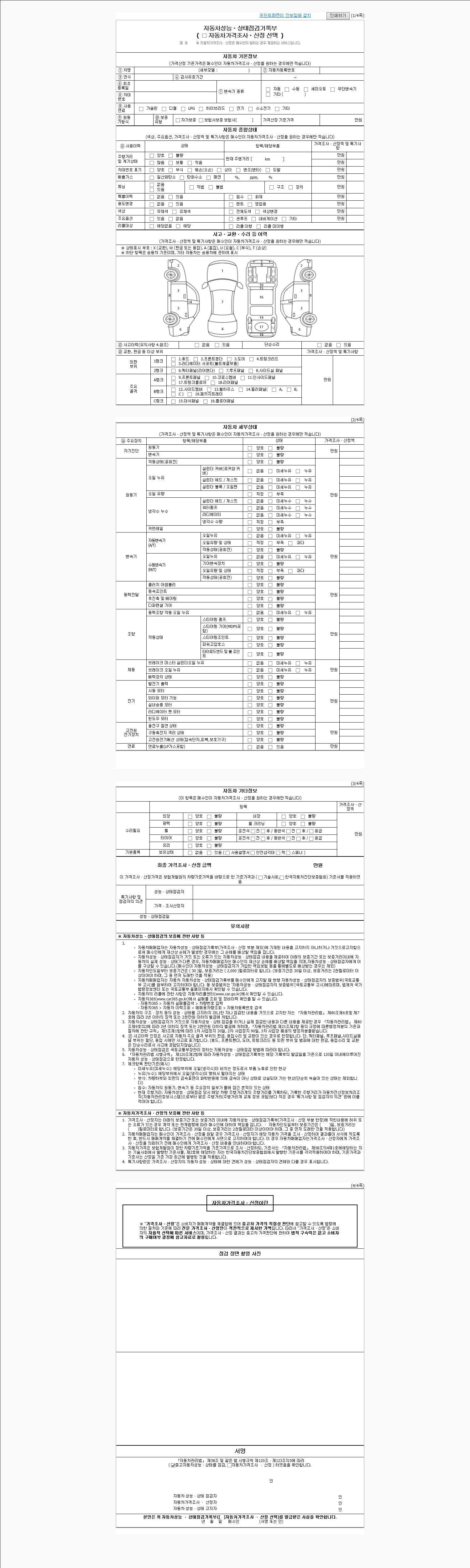 -중고자동차 매매업자를 통해 차량을 구입하실 경우 반드시 "중고자동차 성능, 상태점검 기록부"를 교뷰 받으셔야 하며, 매매업자는 반드시 의무 교부 하여야 압니다.
