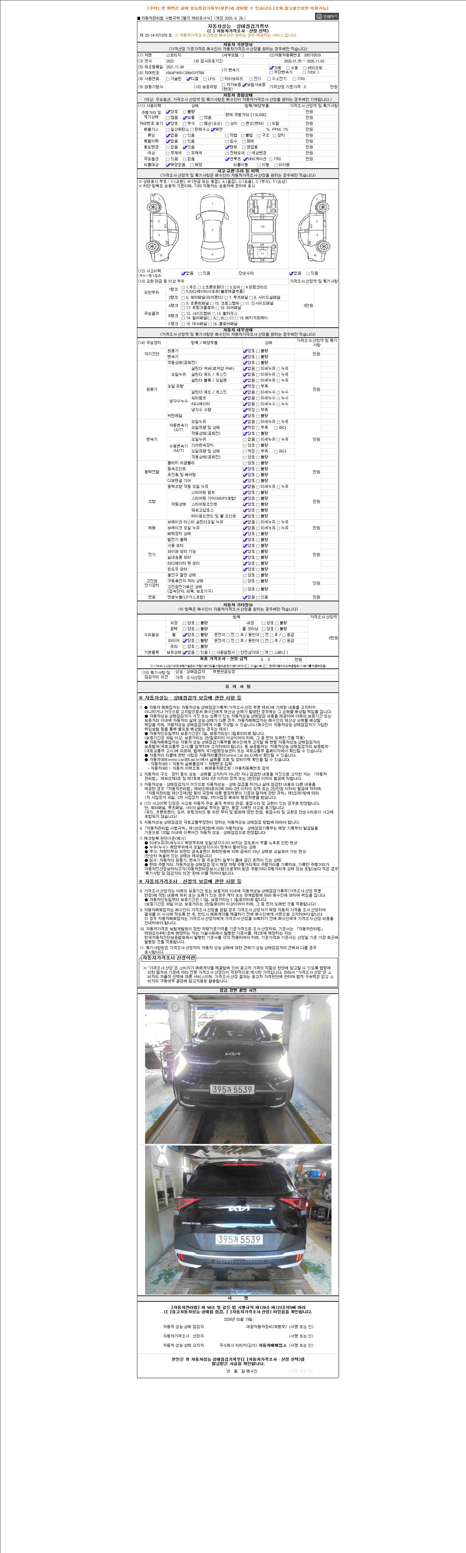 - 2. 차량 등록증이나 성능점검지 등을 상담자에게 요청및 확인하시고 사전에 미리 점검 하시기를 권유드립니다.