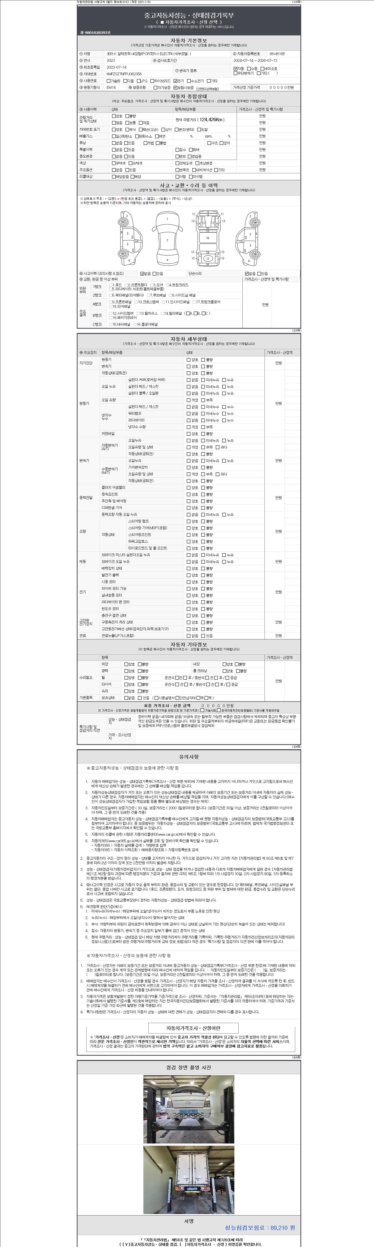 | 주행거리 | 124,426 km | 차량번호 | 86너6185 | 사고유무 | 성능기록부 참조 | 제시번호 | 제 2147483647 호 |