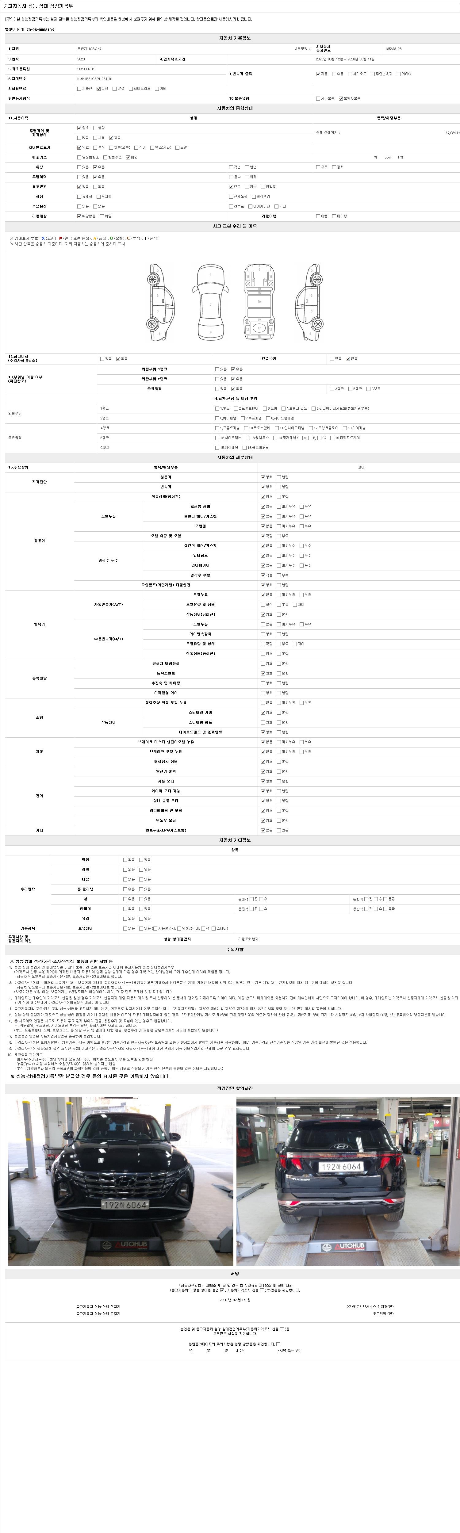 - 2. 차량 등록증이나 성능점검지 등을 상담자에게 요청및 확인하시고 사전에 미리 점검 하시기를 권유드립니다.