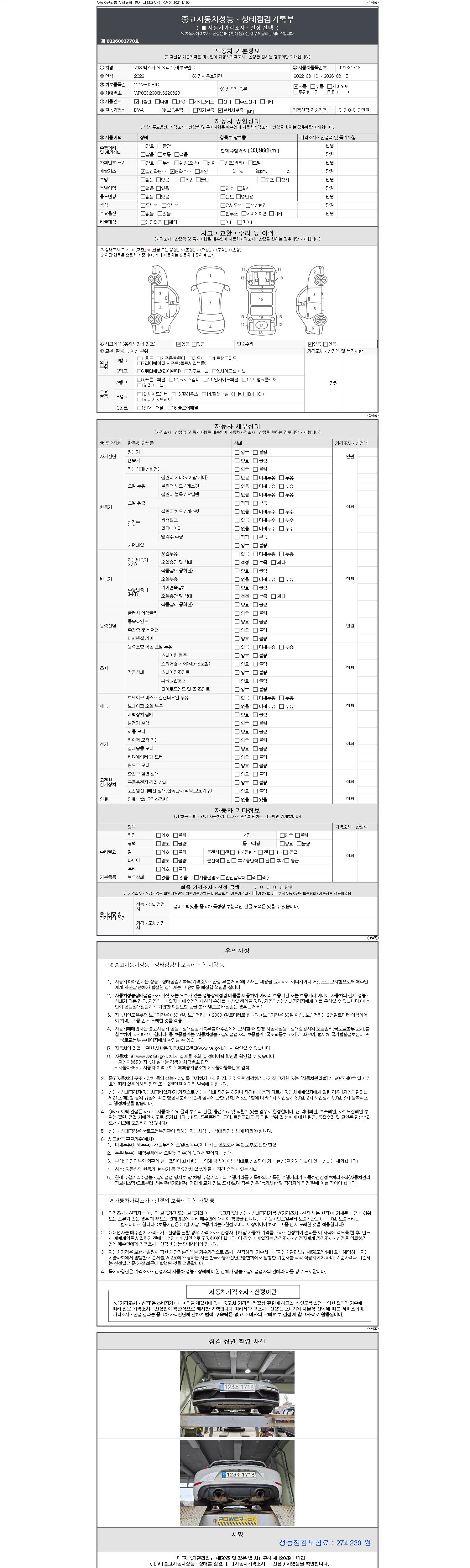 | 주행거리 | 33,966 km | 차량번호 | 123소1718 | 사고유무 | 성능기록부 참조 | 제시번호 | 제 2147483647 호 |