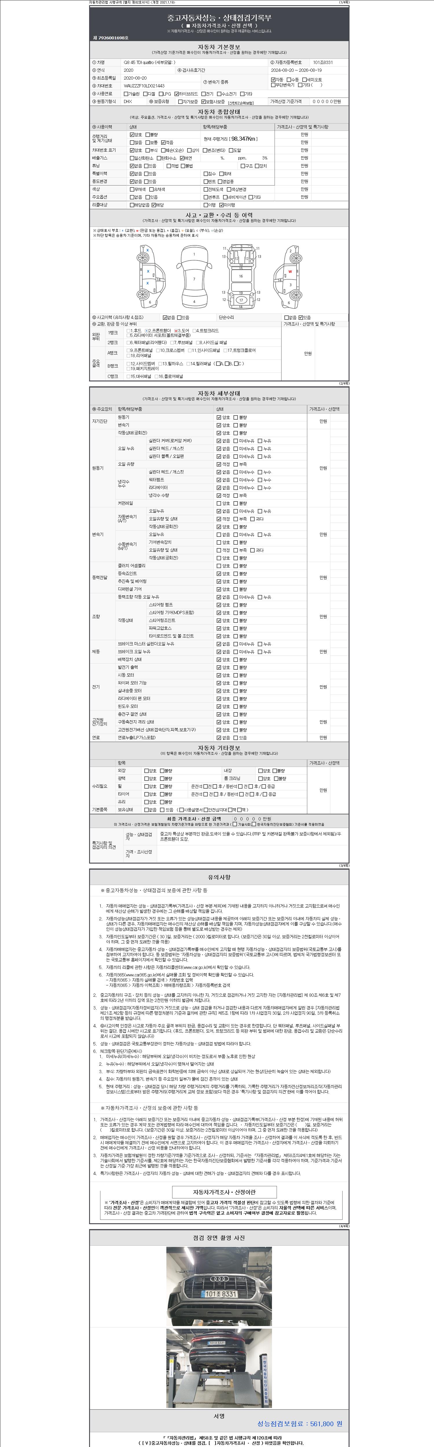 - 2. 차량 등록증이나 성능점검지 등을 상담자에게 요청및 확인하시고 사전에 미리 점검 하시기를 권유드립니다.
