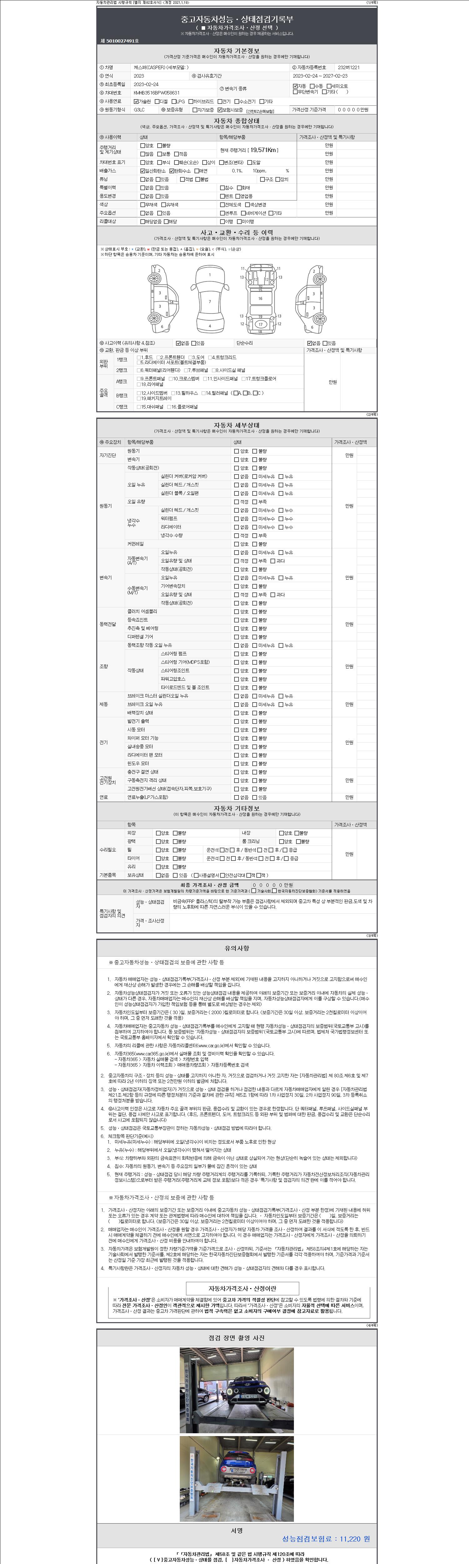 - 사고유무 : 성능기록부 참조