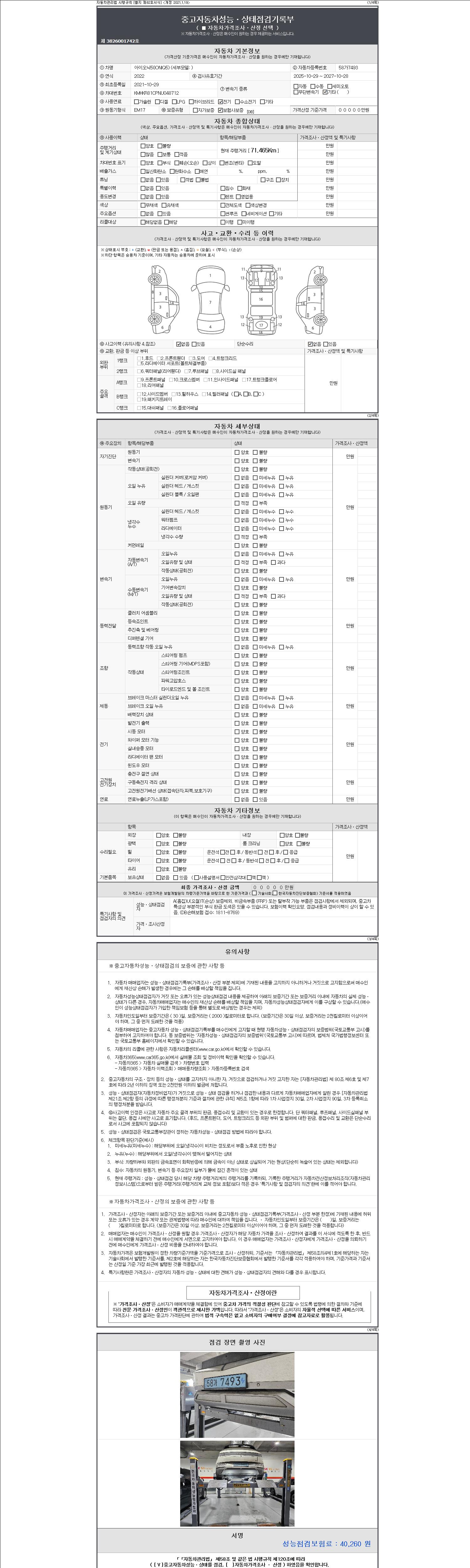 - 사고유무 : 성능기록부 참조