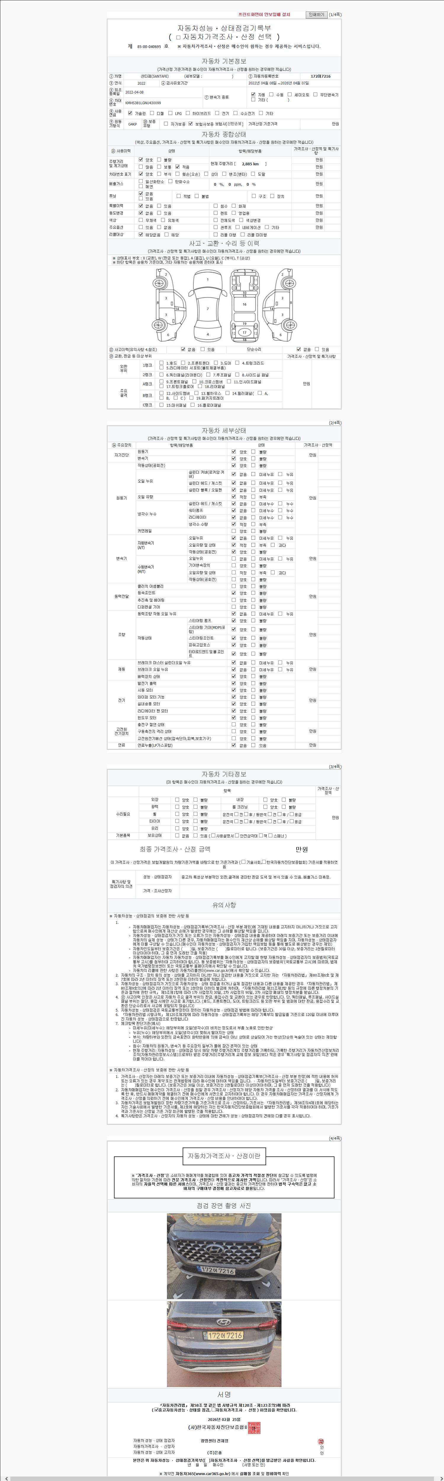 - 2. 차량 등록증이나 성능점검지 등을 상담자에게 요청및 확인하시고 사전에 미리 점검 하시기를 권유드립니다.