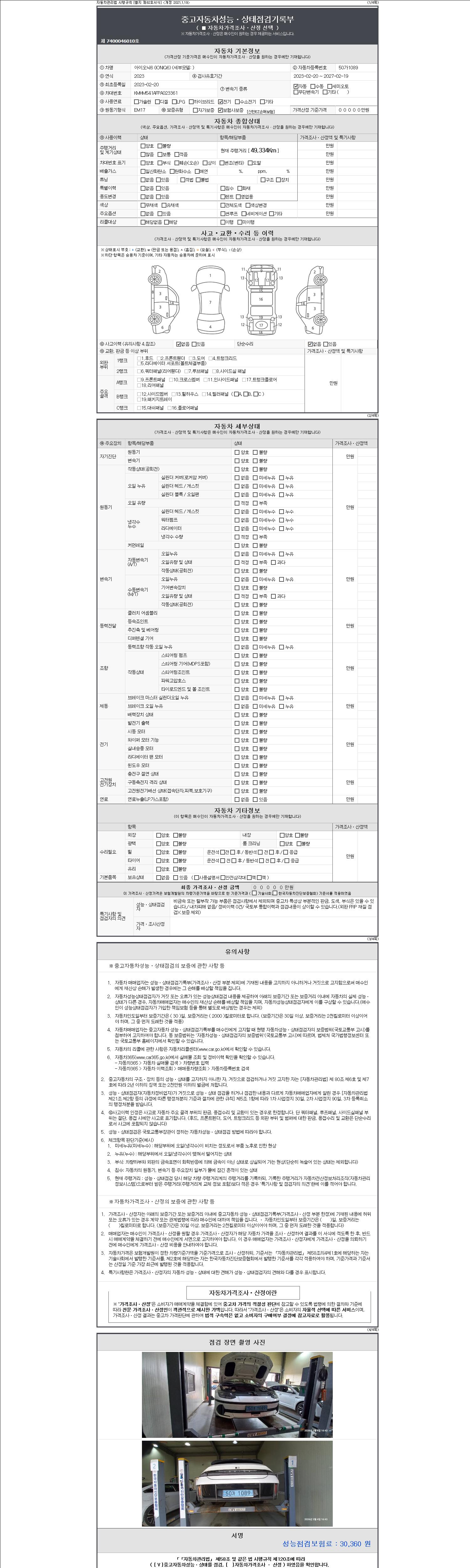 - 사고유무 : 성능기록부 참조
