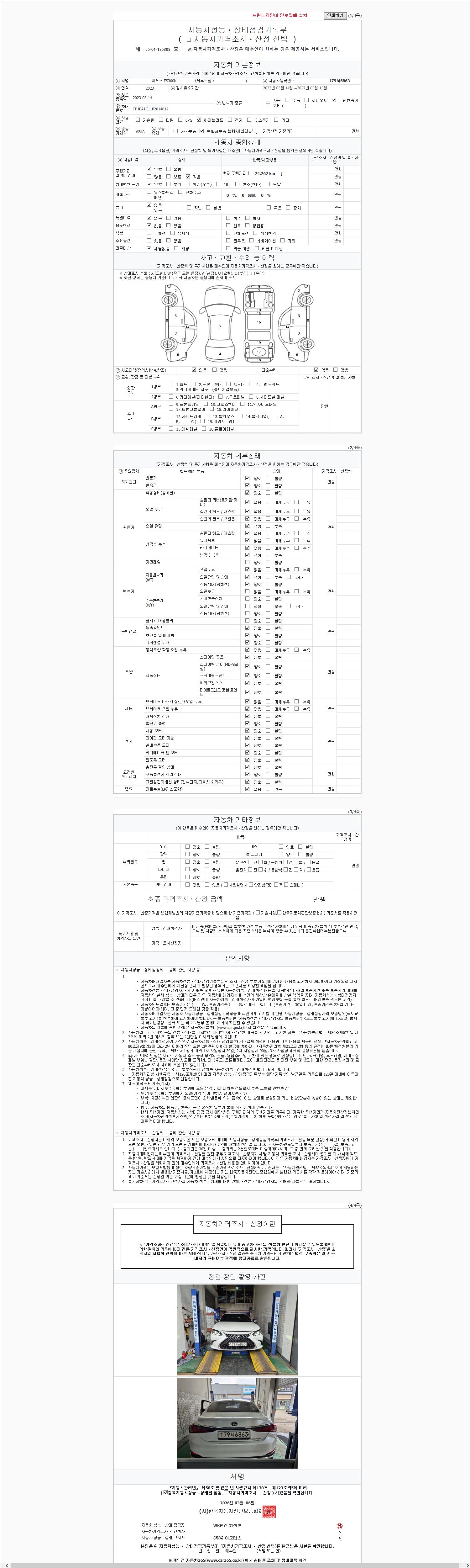 | 주행거리 | 24,262 km | 차량번호 | 179서6863 | 사고유무 | 성능기록부 참조 | 제시번호 | 제 2147483647 호 |