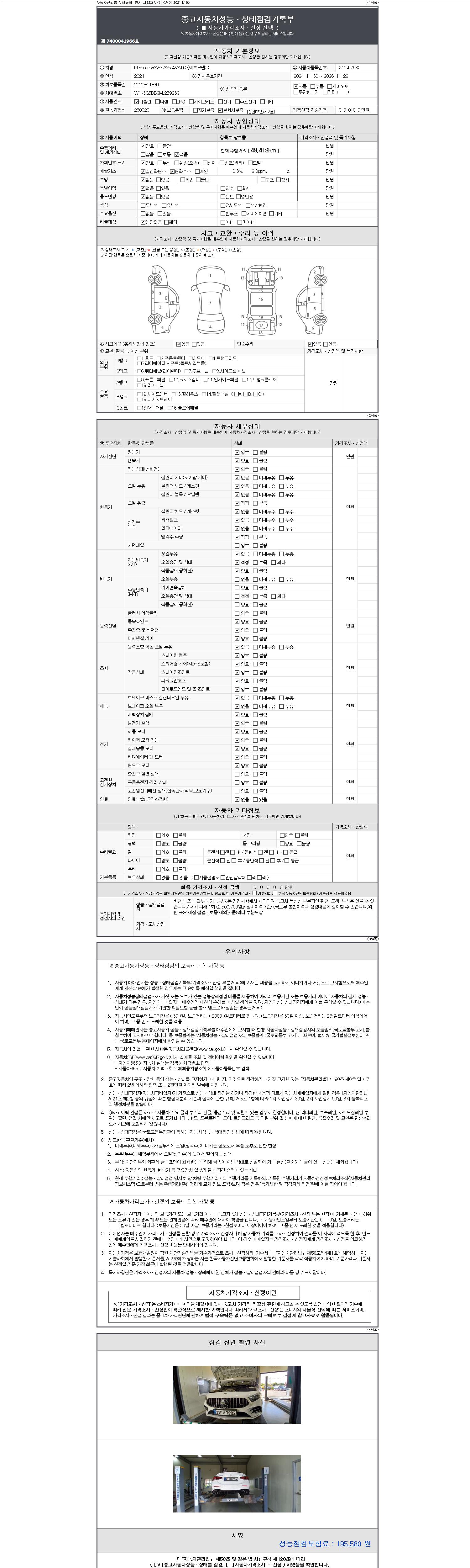 | 주행거리 | 49,419 km | 차량번호 | 210버7982 | 사고유무 | 성능기록부 참조 | 제시번호 | 제 2147483647 호 |
