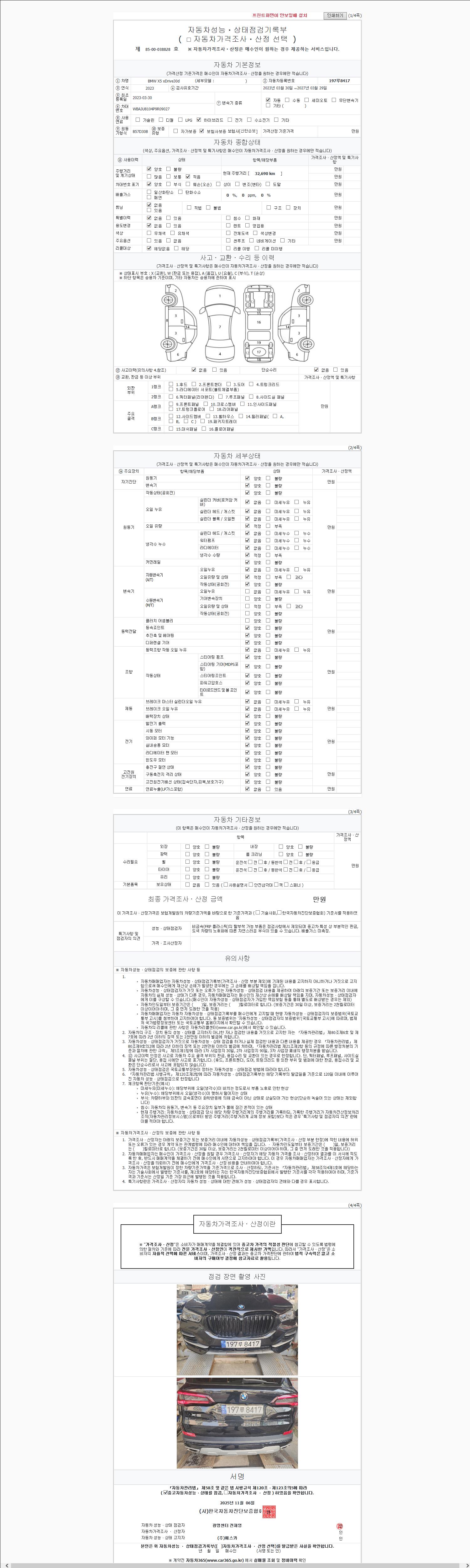- 2. 차량 등록증이나 성능점검지 등을 상담자에게 요청및 확인하시고 사전에 미리 점검 하시기를 권유드립니다.