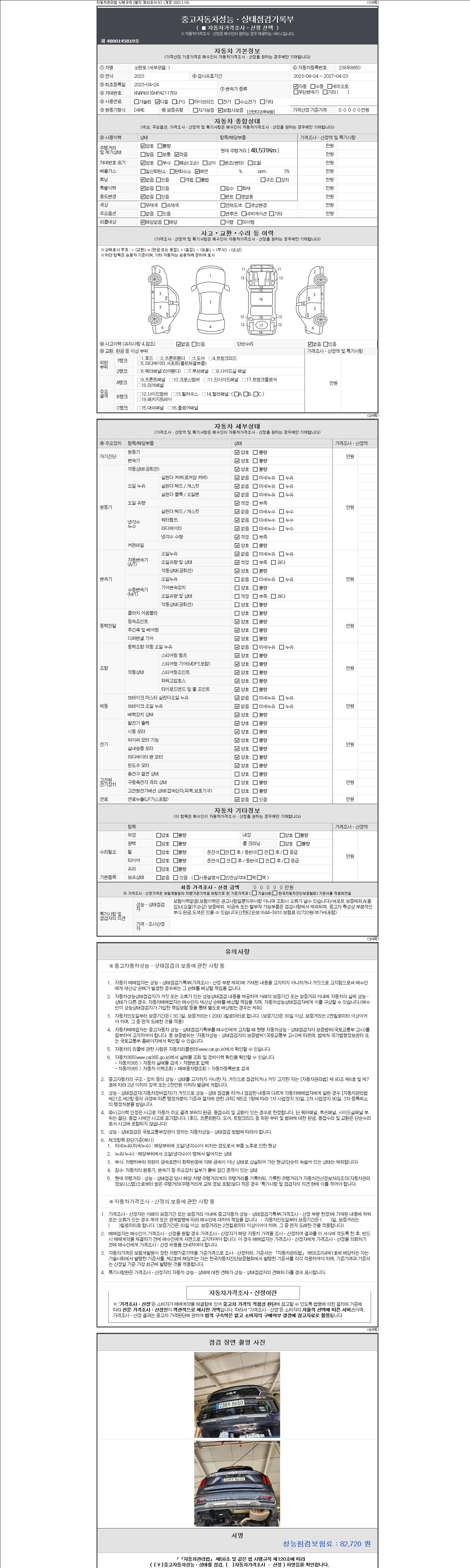 | 주행거리 | 48,531 km | 차량번호 | 238두8650 | 사고유무 | 성능기록부 참조 | 제시번호 | 제 2147483647 호 |