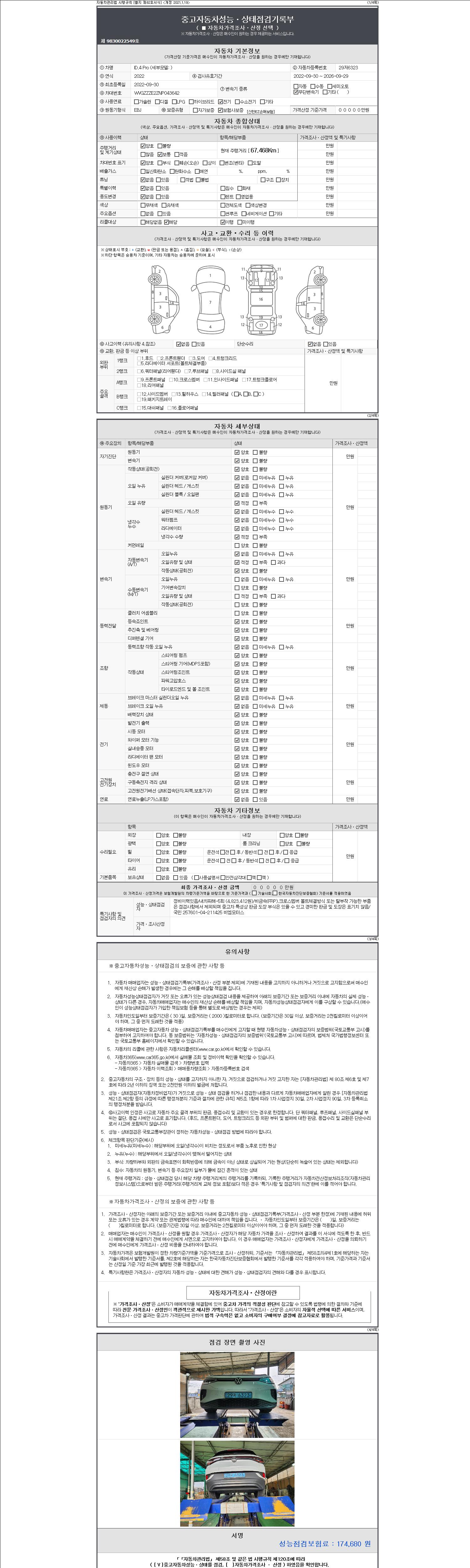 | 주행거리 | 67,468 km | 차량번호 | 29저6323 | 사고유무 | 성능기록부 참조 | 제시번호 | 제 2147483647 호 |