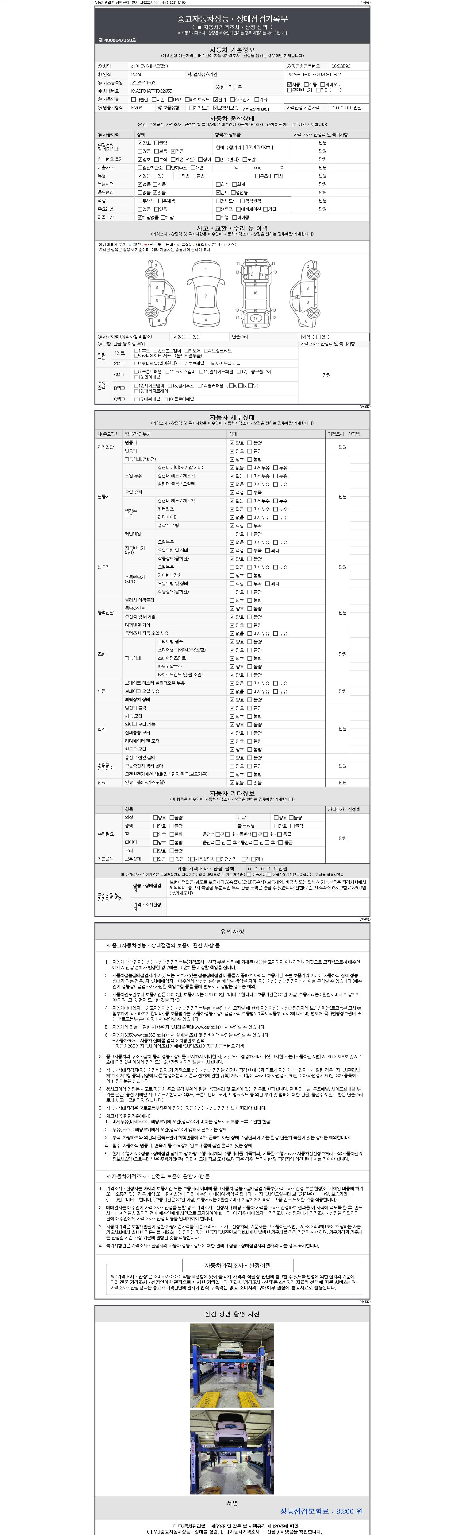 | 주행거리 | 12,437 km | 차량번호 | 06오8596 | 사고유무 | 성능기록부 참조 | 제시번호 | 제 2147483647 호 |