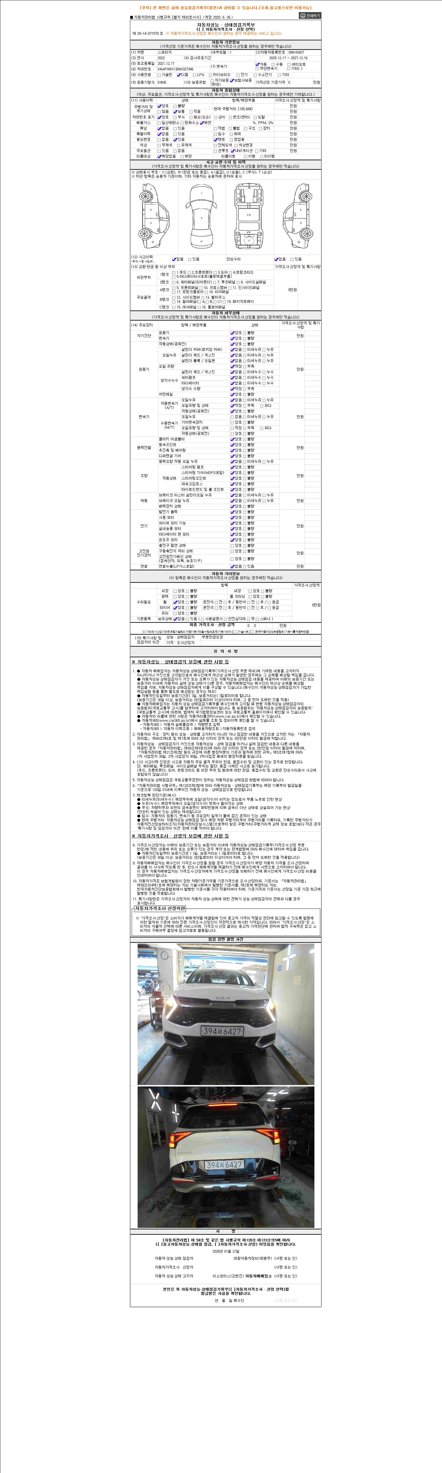 | 주행거리 | 105,674 km | 차량번호 | 394서6427 | 사고유무 | 성능기록부 참조 | 제시번호 | 제 2026007776 호 |