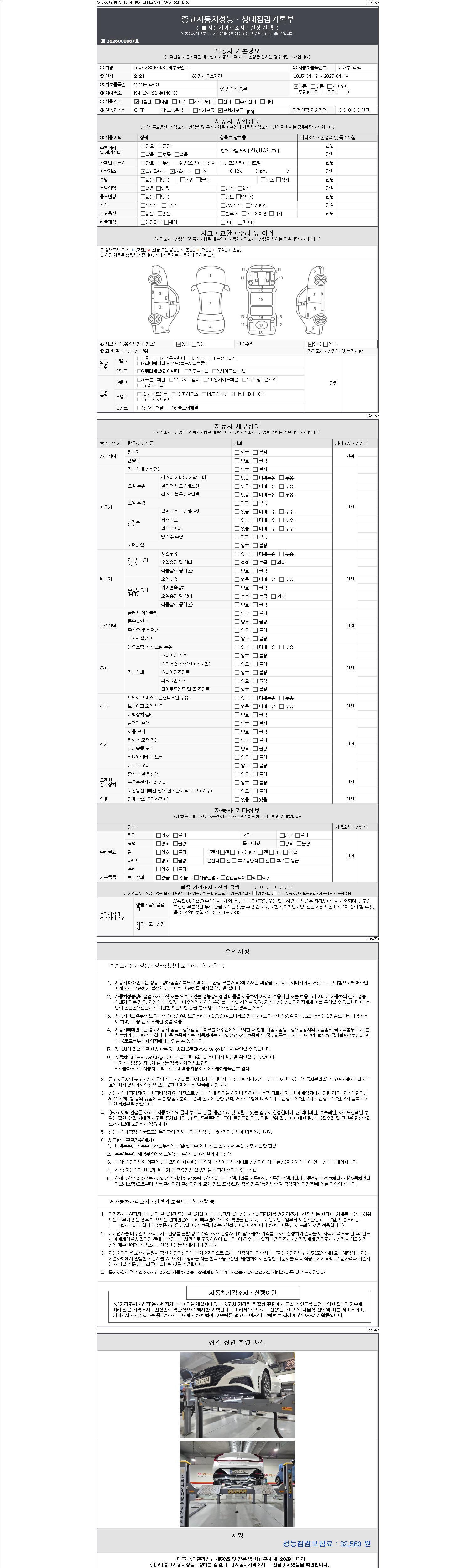 - 사고유무 : 성능기록부 참조