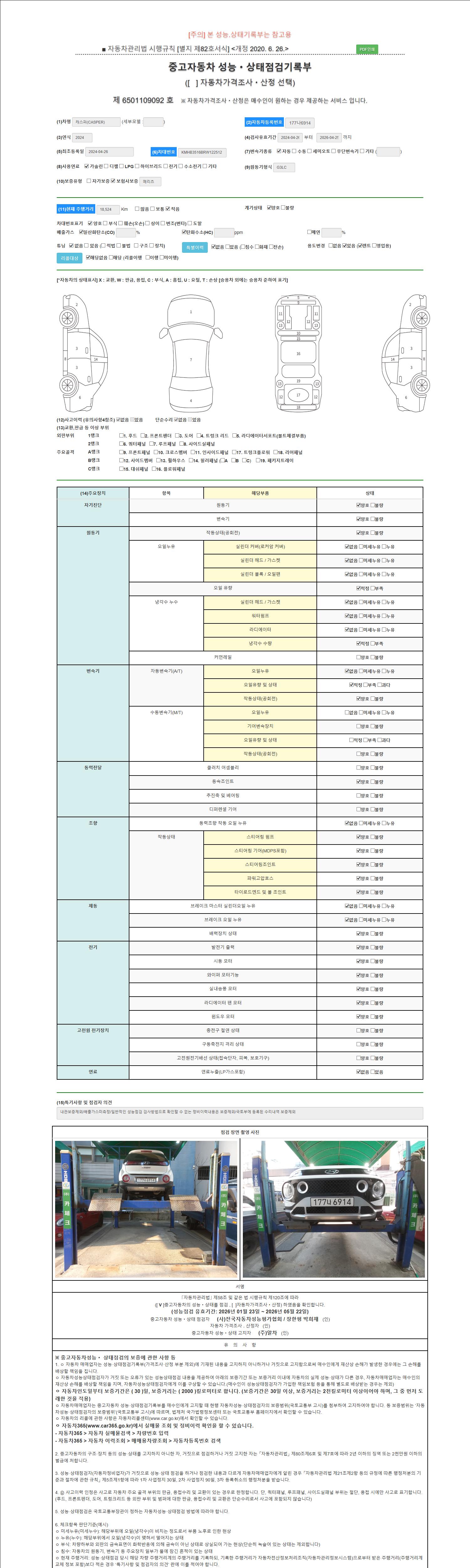 - 2. 차량 등록증이나 성능점검지 등을 상담자에게 요청및 확인하시고 사전에 미리 점검 하시기를 권유드립니다.