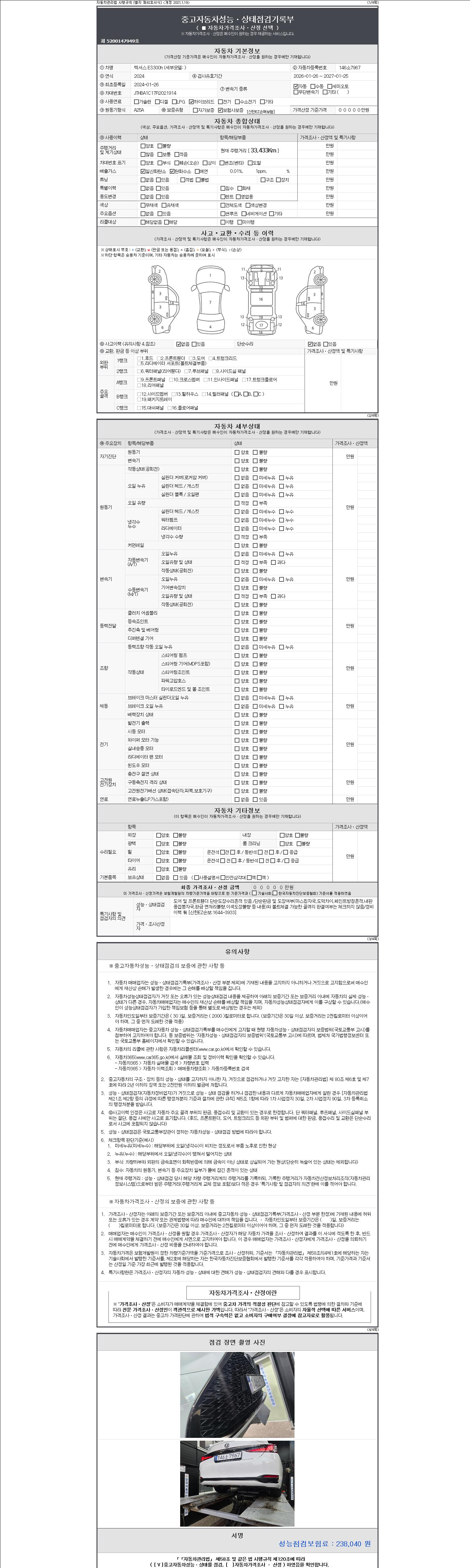 | 주행거리 | 33,383 km | 차량번호 | 146소7967 | 사고유무 | 성능기록부 참조 | 제시번호 | 제 2147483647 호 |