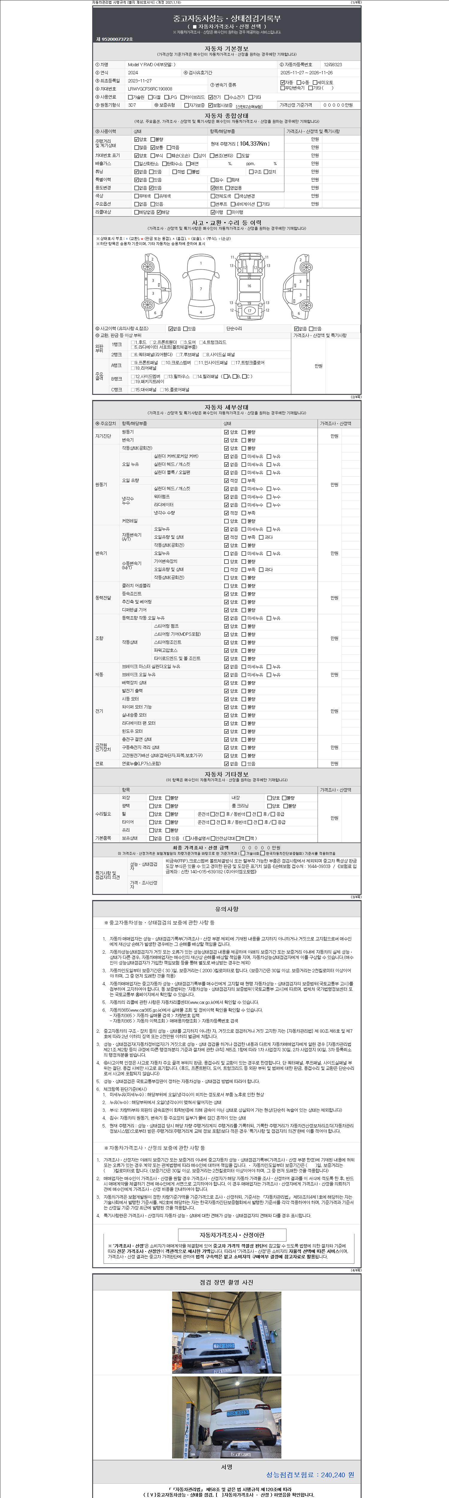 | 주행거리 | 104,337 km | 차량번호 | 12라8323 | 사고유무 | 성능기록부 참조 | 제시번호 | 제 2147483647 호 |
