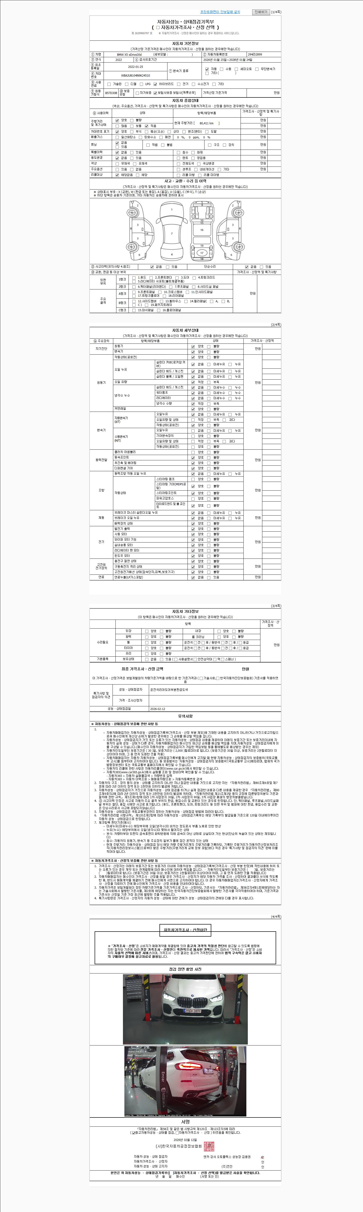| 주행거리 | 80,412 km | 차량번호 | 294라2899 | 사고유무 | 성능기록부 참조 | 제시번호 | 제 2026018473 호 |