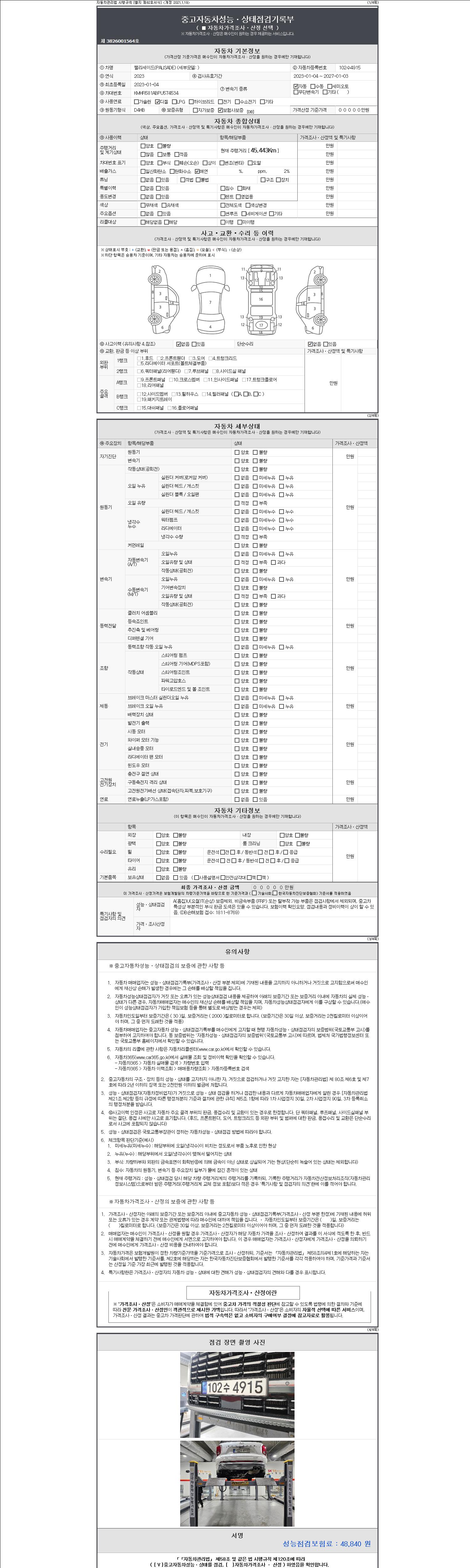 | 주행거리 | 45,443 km | 차량번호 | 102수4915 | 사고유무 | 성능기록부 참조 | 제시번호 | 제 2147483647 호 |