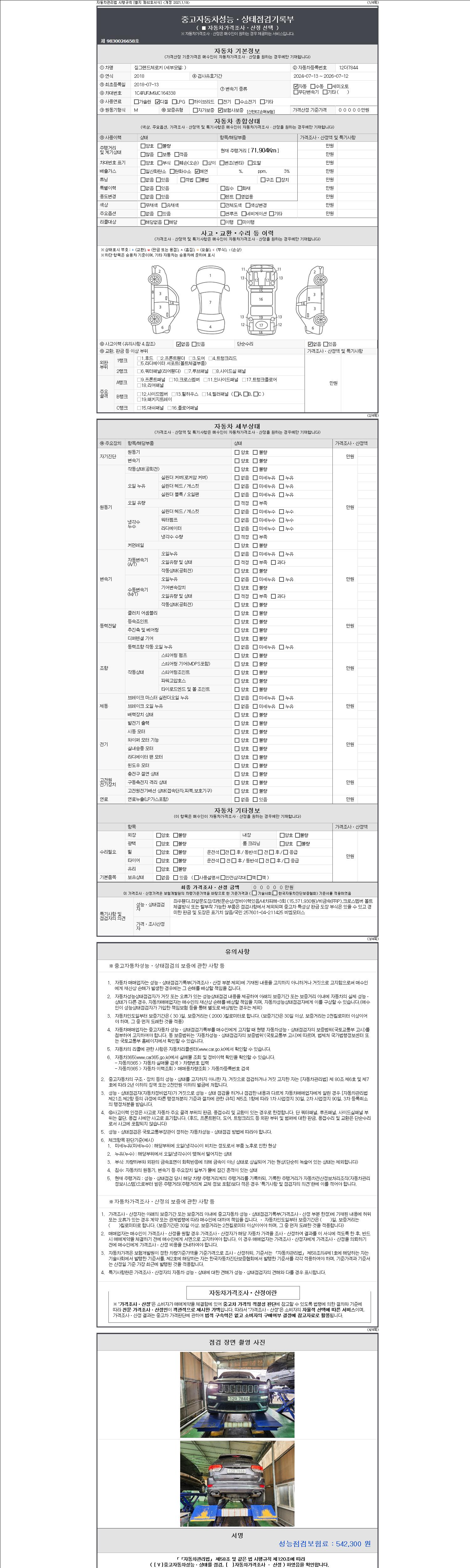 | 주행거리 | 71,904 km | 차량번호 | 12더7844 | 사고유무 | 성능기록부 참조 | 제시번호 | 제 2147483647 호 |