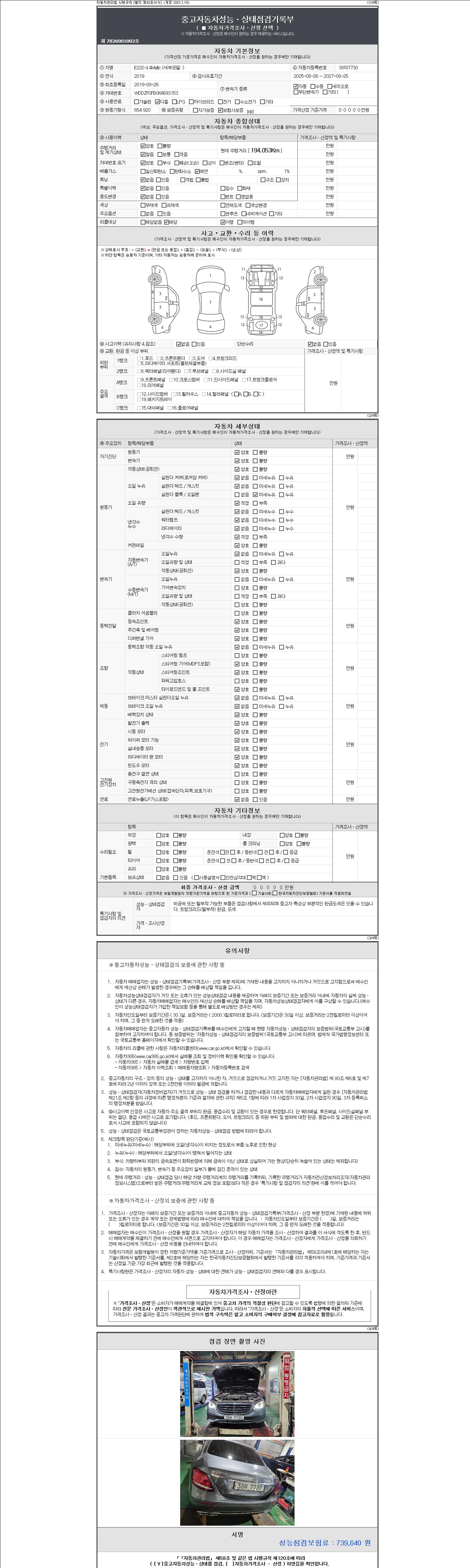 | 주행거리 | 194,053 km | 차량번호 | 38마7730 | 사고유무 | 성능기록부 참조 | 제시번호 | 제 2147483647 호 |