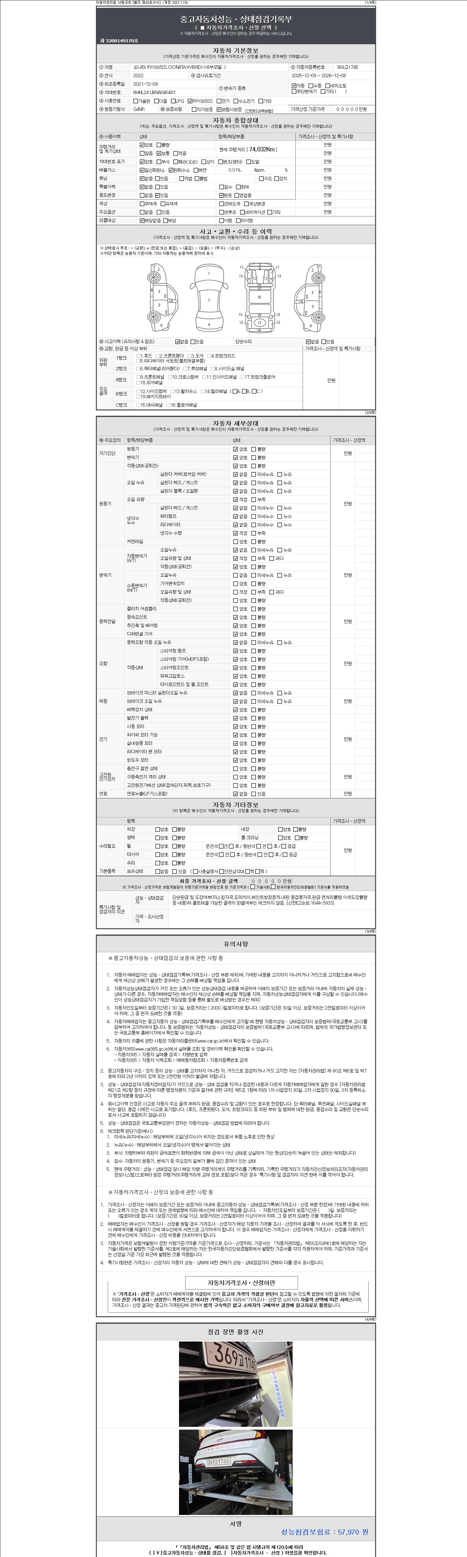 | 주행거리 | 74,028 km | 차량번호 | 369고1745 | 사고유무 | 성능기록부 참조 | 제시번호 | 제 2147483647 호 |