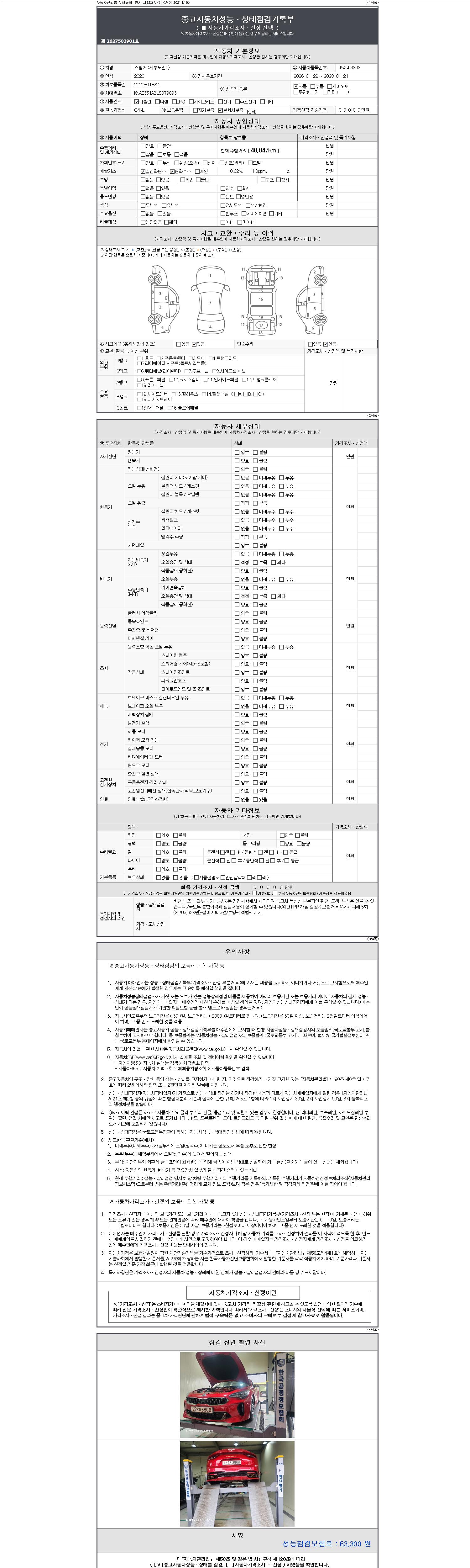 - 2. 차량 등록증이나 성능점검지 등을 상담자에게 요청및 확인하시고 사전에 미리 점검 하시기를 권유드립니다.