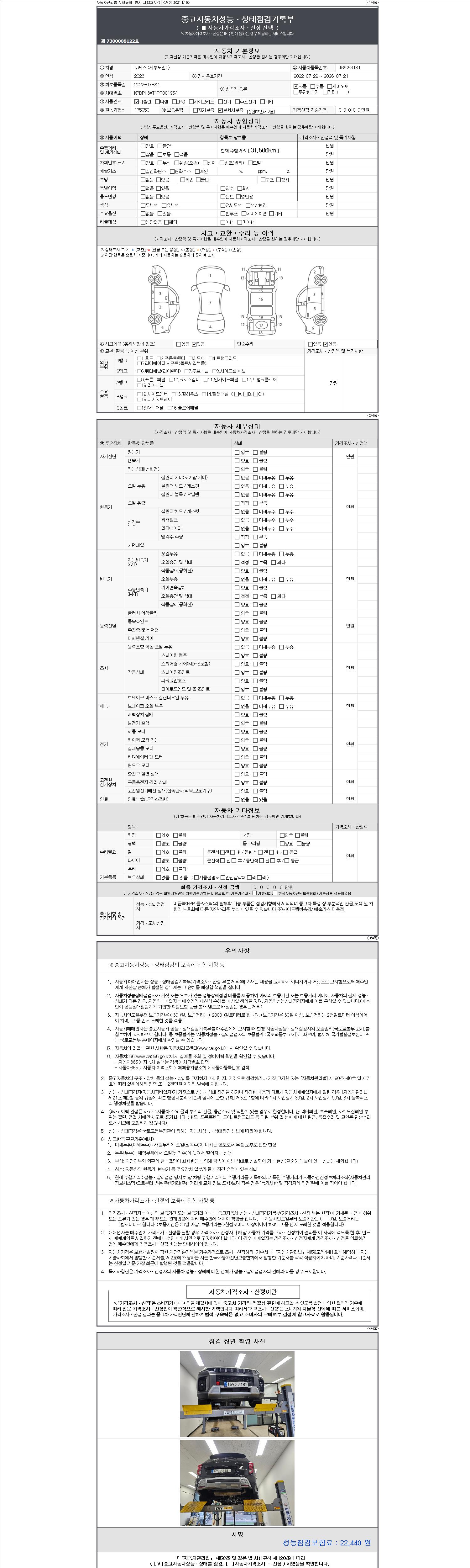 | 주행거리 | 31,506 km | 차량번호 | 169어3181 | 사고유무 | 성능기록부 참조 | 제시번호 | 제 2147483647 호 |