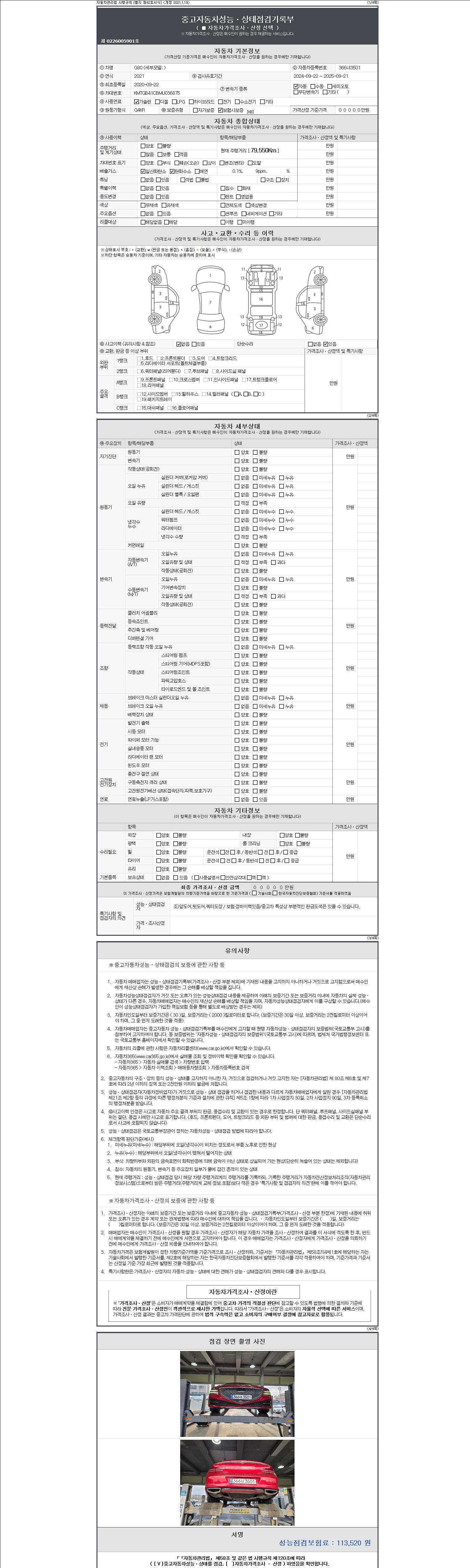 | 주행거리 | 79,550 km | 차량번호 | 366너3501 | 사고유무 | 성능기록부 참조 | 제시번호 | 제 2147483647 호 |