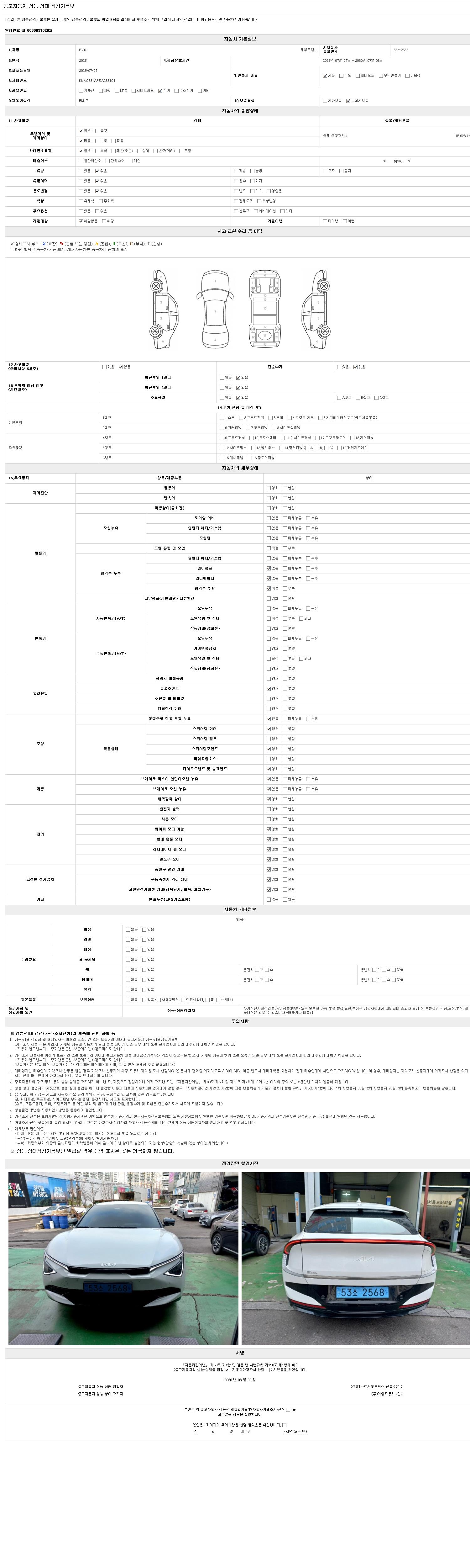 - 2. 차량 등록증이나 성능점검지 등을 상담자에게 요청및 확인하시고 사전에 미리 점검 하시기를 권유드립니다.